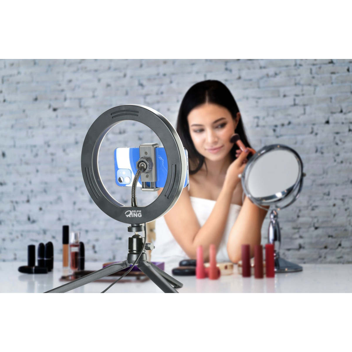 Per riprese video e selfie c’è SELFIE RING, il treppiede per smartphone con anello luminoso che trasforma ogni luogo in un set! L’anello led ha tre modalità di illuminazione attivabili con telecomando e il supporto è regolabile e ruotabile per inquadrature a prova di regista.