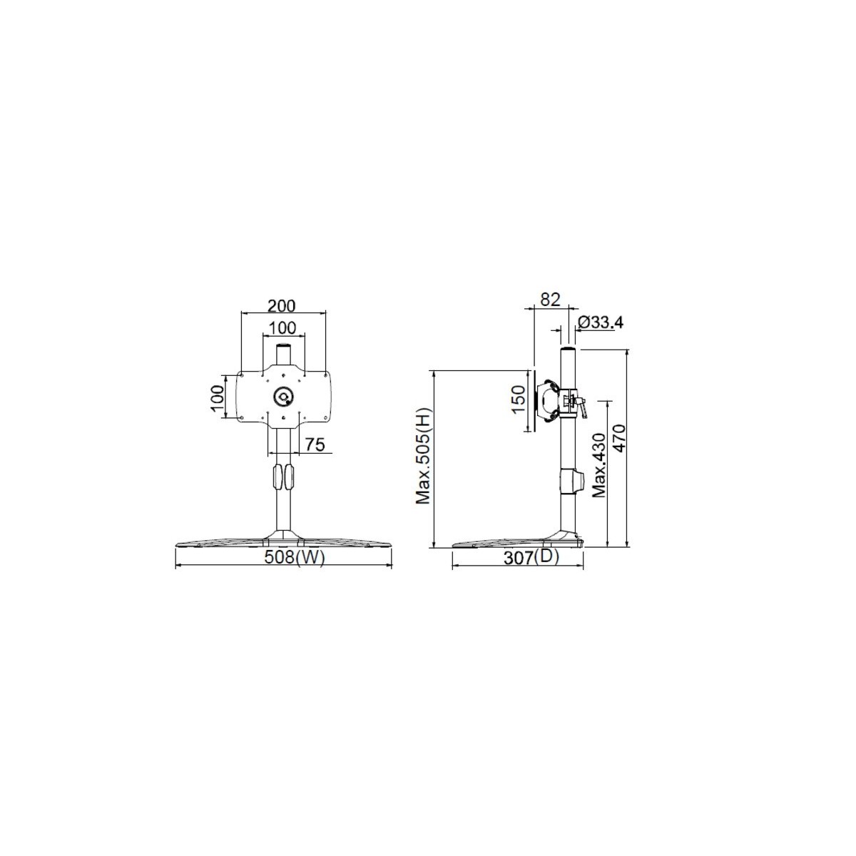 Multibrackets 7396. Montaggio: Libera installazione, Peso massimo (capacità): 15 kg, Capienza minima dimensioni dello schermo: 61 cm (24"), Capienza massima dimensioni dello schermo: 81,3 cm (32"), Compatibilità interfaccia di montaggio (min): 75 x 75 mm, Compatibilità interfaccia di montaggio (max): 200 x 100 mm. Regolazione altezza, Inclinazione: -20 - 20°. Colore del prodotto: Nero