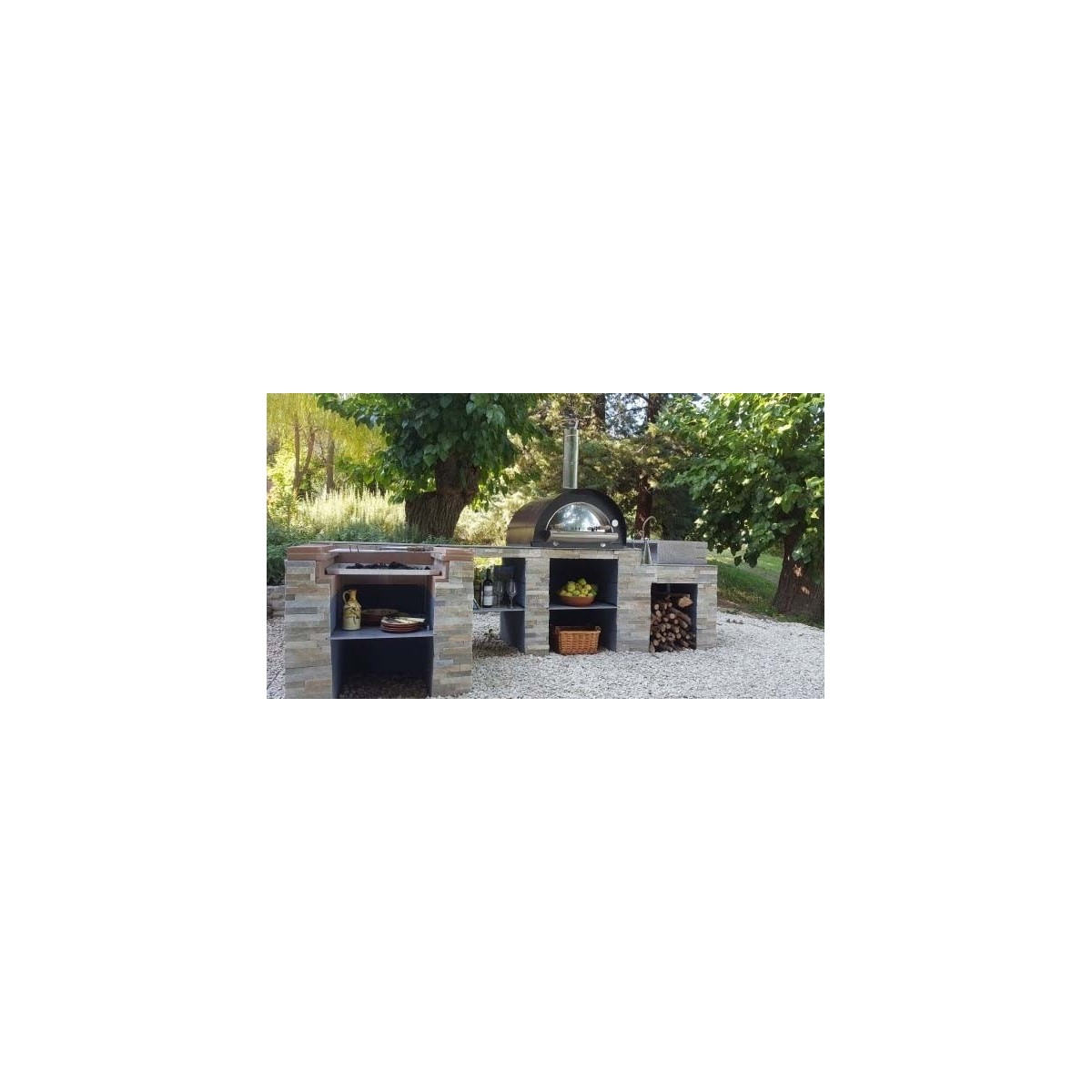 Regalatevi questo forno a legna e godetevi con la vostra famiglia o con i vostri più cari amici, non soltanto la tradizionale pizza italiana, ma qualunque ricetta possiate usare con un forno a legna a cottura diretta. Costruito esclusivamente con materiali di ottima qualità Pizza Mia Estia riesce a combinare l'eleganza del suo design con la facilità e la praticità del suo utilizzo diventando così il forno ideale per completare la tua cucina da esterno o per il proprio giardino o veranda.