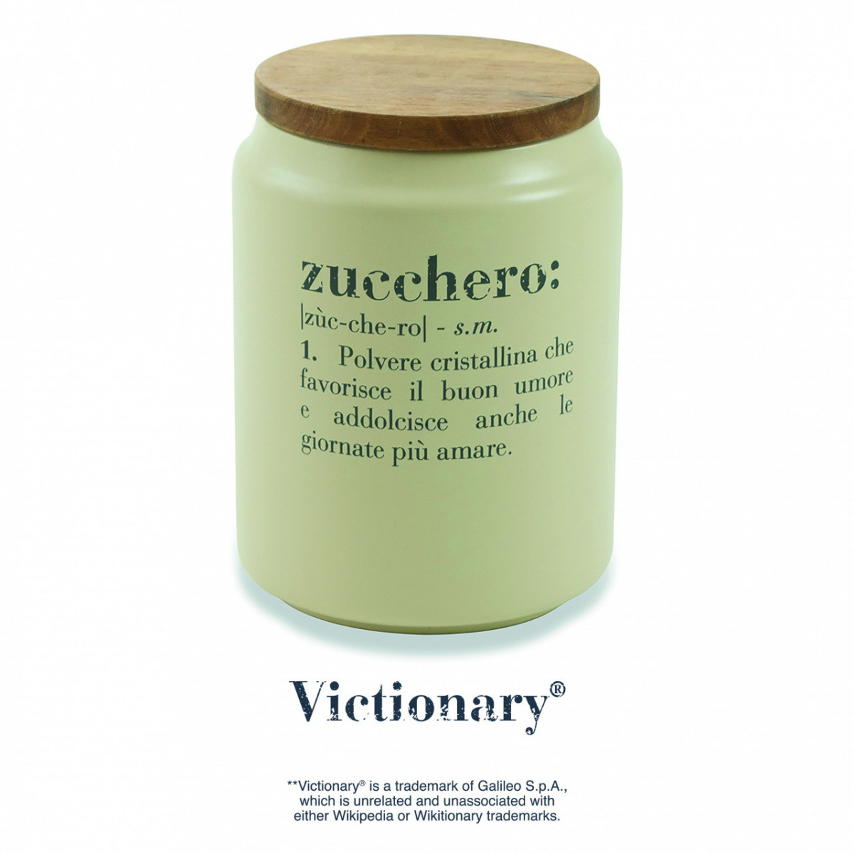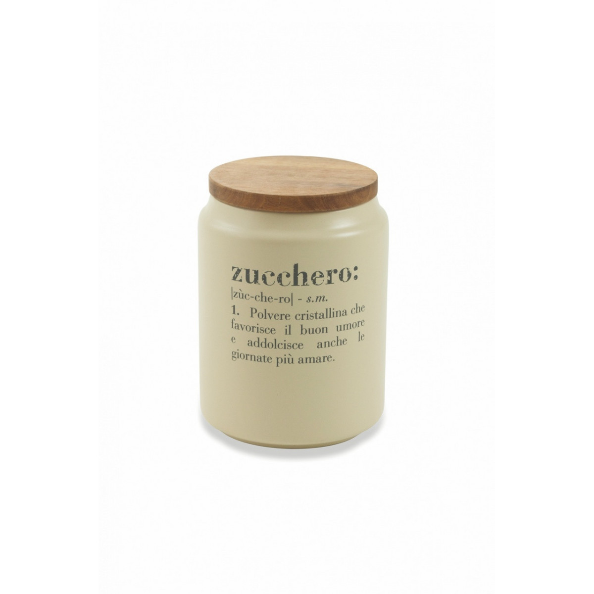 Victionary Barattolo zucchero In gres Coperchio in bamboo Chiusura galvanizzata in silicone Con scritta Finitura opaca Misure: Ø 10,5 x h. 15 cm Colore: crema Lavabile in lavastoviglie Capacità: 850 ml