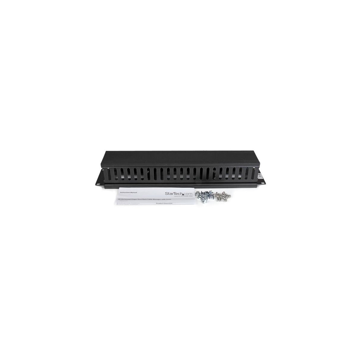 StarTech.com Pannello Gestione Cavi Orizzontale per armadi rack 2U con canalina passacavi a denti e copertura. Tipo: Pannello di gestione del cavo, Colore del prodotto: Nero, Materiale della scocca: Plastica, Acciaio. Larghezza: 482 mm, Profondità: 79 mm, Altezza: 88,1 mm. Larghezza imballo: 126 mm, Profondità imballo: 540 mm, Altezza imballo: 100 mm. Tipo di vite: M5, M6