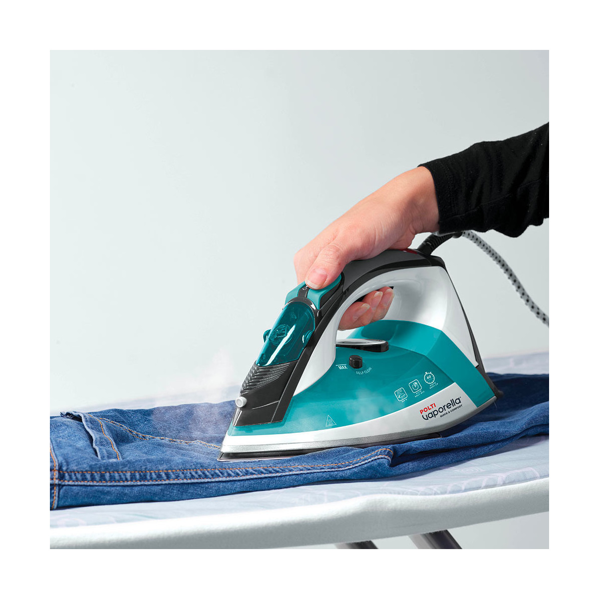 Il sistema di pulizia Self Clean di cui è dotata Polti Vaporella Quick & Comfort permette la corretta rimozione del calcare presente all'interno del ferro da stiro, questo garantisce la durata e l'efficienza dell'apparecchio nel tempo.