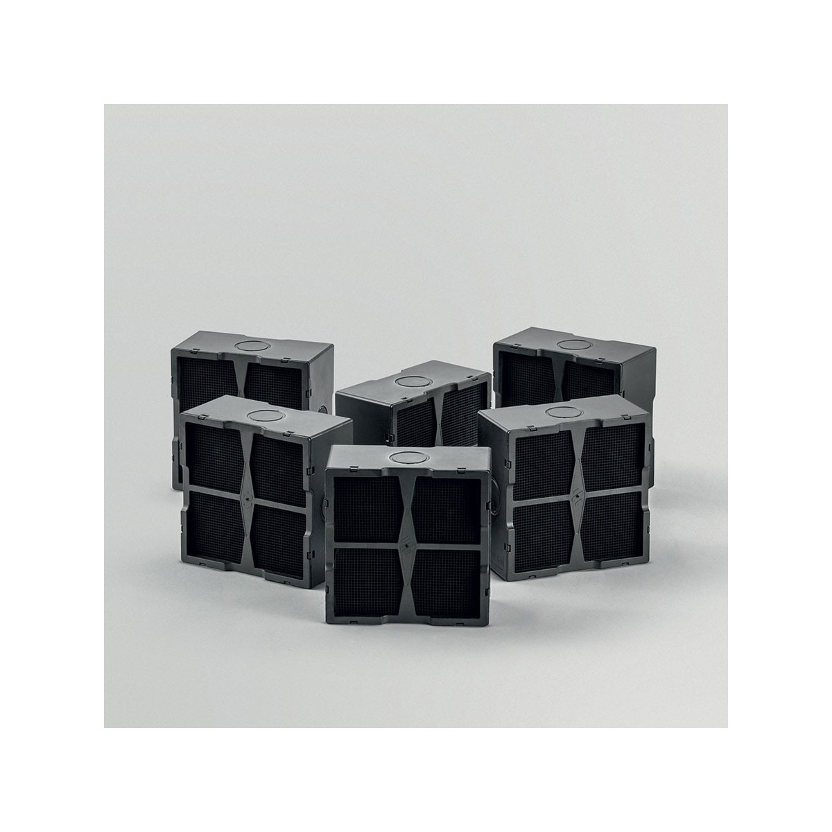 I carboni attivi sono integrati in una struttura ceramica che li rende facilmente e completamenteaccessibili dalle impurità, creando così un'elevata superficie di assorbimento. La saturazione dei filtri ceramici a carboni attivi si verifica dopo un uso più o meno prolungato a seconda del tipo di cucina e della regolarità della pulizia del filtro grassi. Questi filtri odori possono essere rigenerati termicamente ogni 2/3 mesi in forno preriscaldato a 200°C per 45 minuti. La rigenerazione consente una durata massima dei filtri di 5 anni.