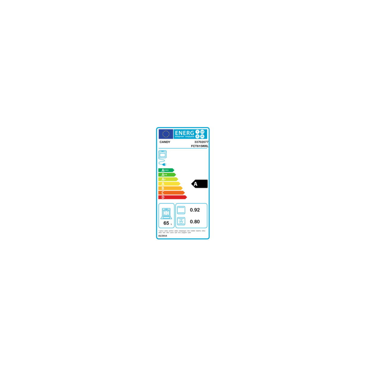 Candy FCT625WXL/E - Forno Elettrico da Incasso, Ventilato, 70 Litri, Bianco, A