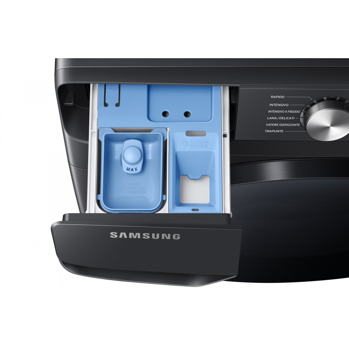 Samsung WF18T8000GV. Tipo di carica: Caricamento frontale. Capacità cestello: 18 kg, Classe di efficienza della centrifuga: B, Velocità di centrifuga massima: 1100 Giri/min. Colore del prodotto: Nero. Larghezza: 686 mm, Profondità: 796 mm, Altezza: 984 mm. Classe efficienza energetica: C