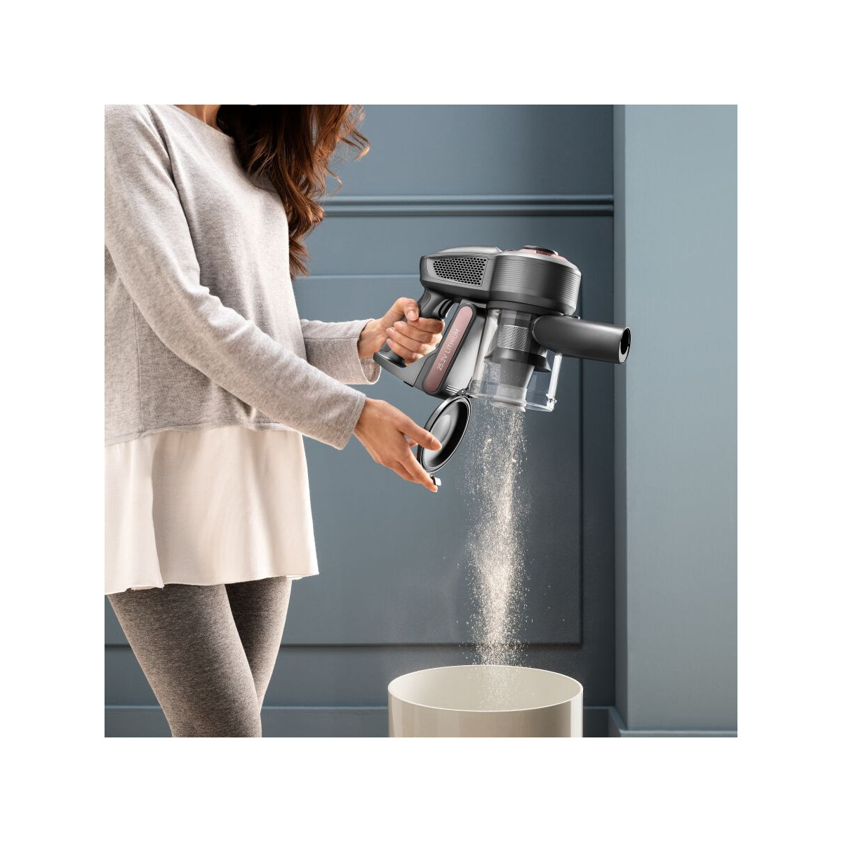 - Sistema senza sacchetti per un’operazione di svuotamento semplice e senza sforzo del serbatoio della polvere