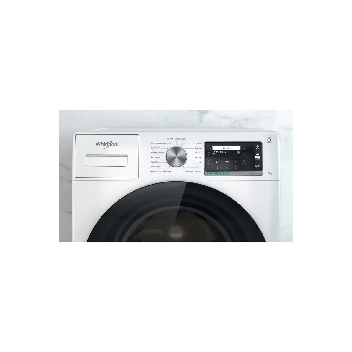 Whirlpool W6 W045WB IT - Lavatrice a Carica Frontale, 6° Senso, 10 Kg, 1300 Giri, Classe B