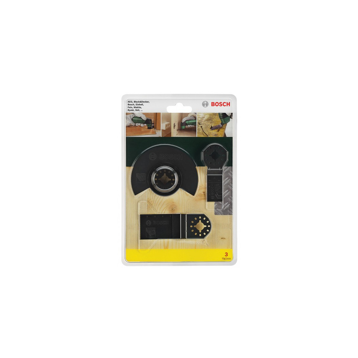 Bosch 2607017323. Tipo: Set di lame, Adatto per materiali: Legno. Larghezza: 225 mm. Quantità per pacco: 3 pz, Tipo di imballo: Blister