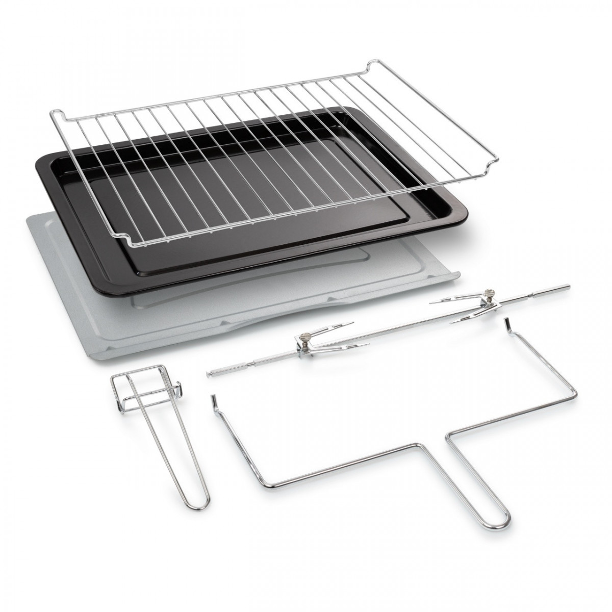 Forno ventilato Princess, griglia, teglia da forno, spiedo girarrosto, maniglia, manico spiedo, manuale di istruzioni