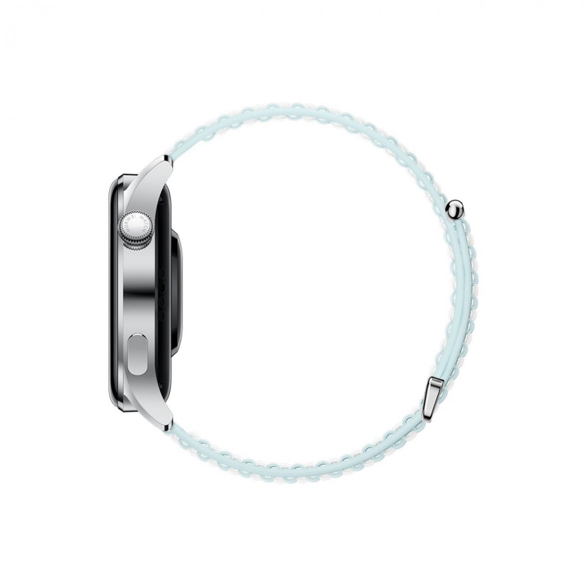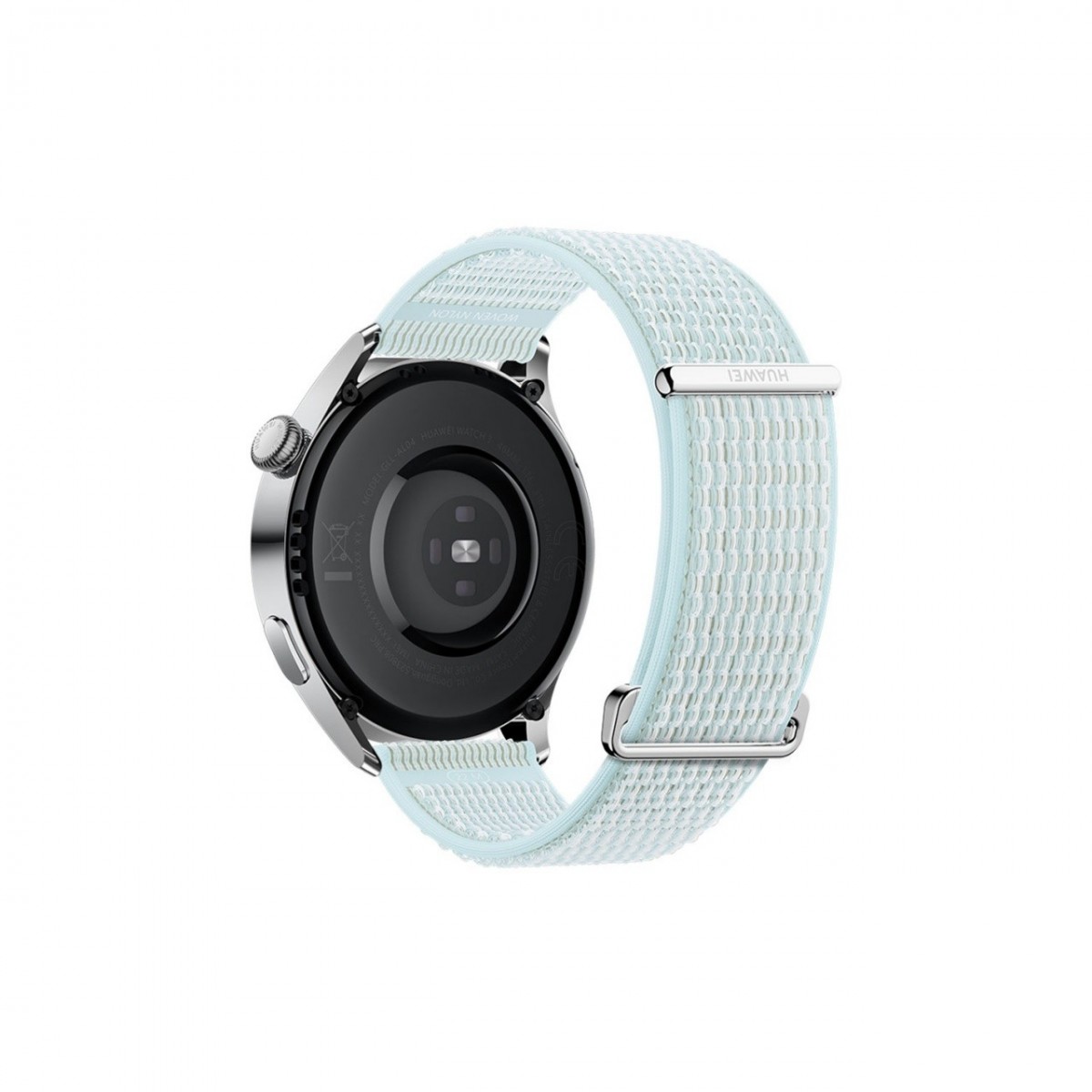 Huawei WATCH 3. Dimensioni schermo: 3,63 cm (1.43"), Tipo di display: OLED, Risoluzione del display: 466 x 466 Pixel, Touch screen. Capacità RAM: 2000 MB, Memoria flash: 16 GB. Wi-Fi. GPS (satellitare). Capacità della batteria: 450 mAh. Peso: 54 g. Materiale cinturino: Nylon, Colore cinturino: Blu. Sistema operativo incluso: HarmonyOS