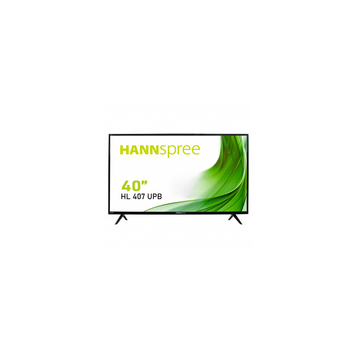 Hannspree HL407UPB. Dimensioni schermo: 100,3 cm (39.5"), Tecnologia display: VA, Risoluzione del display: 1920 x 1080 Pixel. Potenza in uscita (RMS): 8 W. Colore del prodotto: Nero, Posizionamento supportato: Interno, Orientamento: Orizzontale. Utilizzo: Universale. Consumi: 37 W, Classe di efficienza energetica (SDR): F, Tensione di ingresso AC: 100 - 240 V