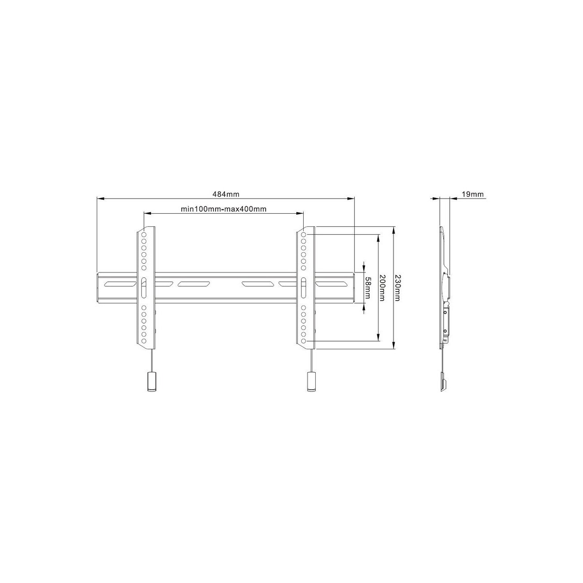 Multibrackets 6553. Peso massimo (capacità): 50 kg, Capienza minima dimensioni dello schermo: 81,3 cm (32"), Capienza massima dimensioni dello schermo: 165,1 cm (65"), Compatibilità interfaccia di montaggio (min): 100 x 100 mm, Compatibilità interfaccia di montaggio (max): 400 x 200 mm. Distanza dal muro (massima): 1,9 cm. Colore del prodotto: Nero