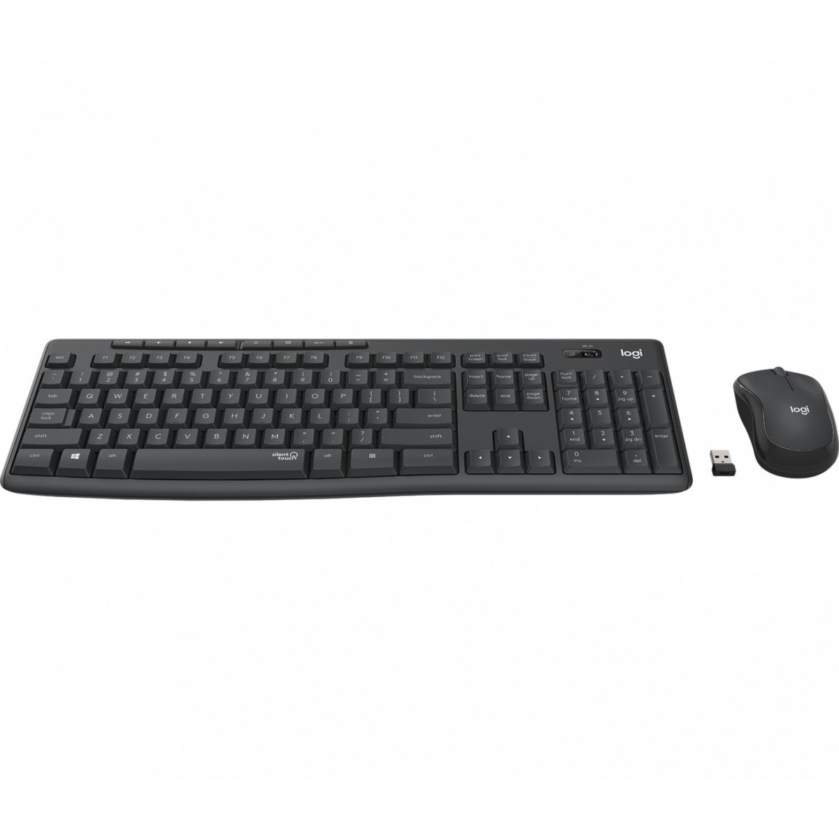 Logitech MK295 Silent Wireless Combo. Fattore di forma tastiera: Standard. Stile tastiera: Dritto. Interfaccia dispositivo: RF Wireless, Struttura tastiera: QWERTY, Utilizzo raccomandato: Ufficio. Colore del prodotto: Nero. Mouse incluso