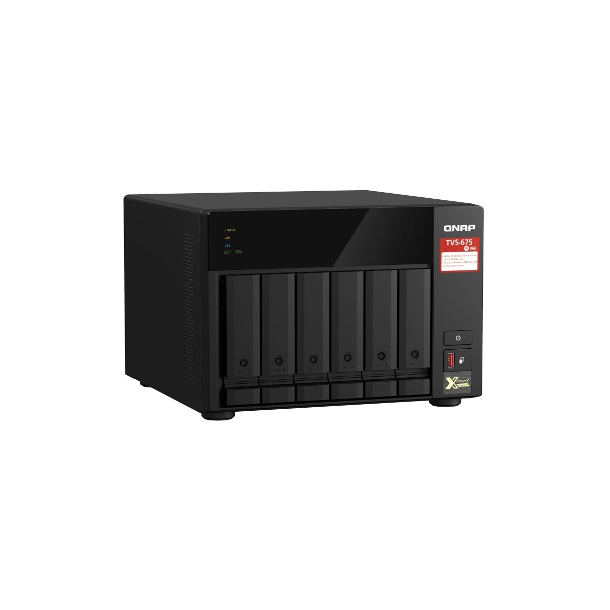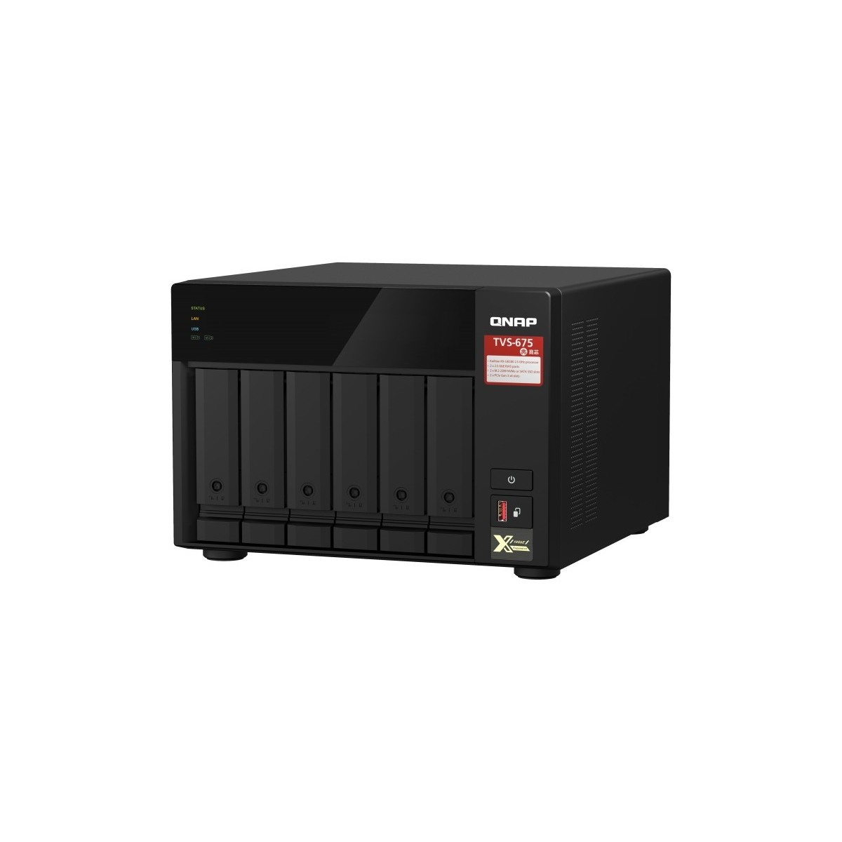 QNAP TVS-675. Tipi di unità di archiviazione supportate: HDD & SSD, Interfaccia dispositivo di archiviazione: M.2, Seriale ATA II, Serial ATA III, Interfacce dell'unità di archiviazione supportate: M.2, Seriale ATA II, Serial ATA III. Famiglia processore: ZhaoXin KaiXian KX-6000, Produttore processore: ZhaoXin, Modello del processore: KX-U6580. RAM installata: 8 GB, Tipo di RAM: DDR4, Massima RAM supportata: 64 GB. Velocità trasferimento Ethernet LAN: 100,1000,2500 Mbit/s. Tipo di case: Tower, Tipo di raffreddamento: Attivo, Colore del prodotto: Nero