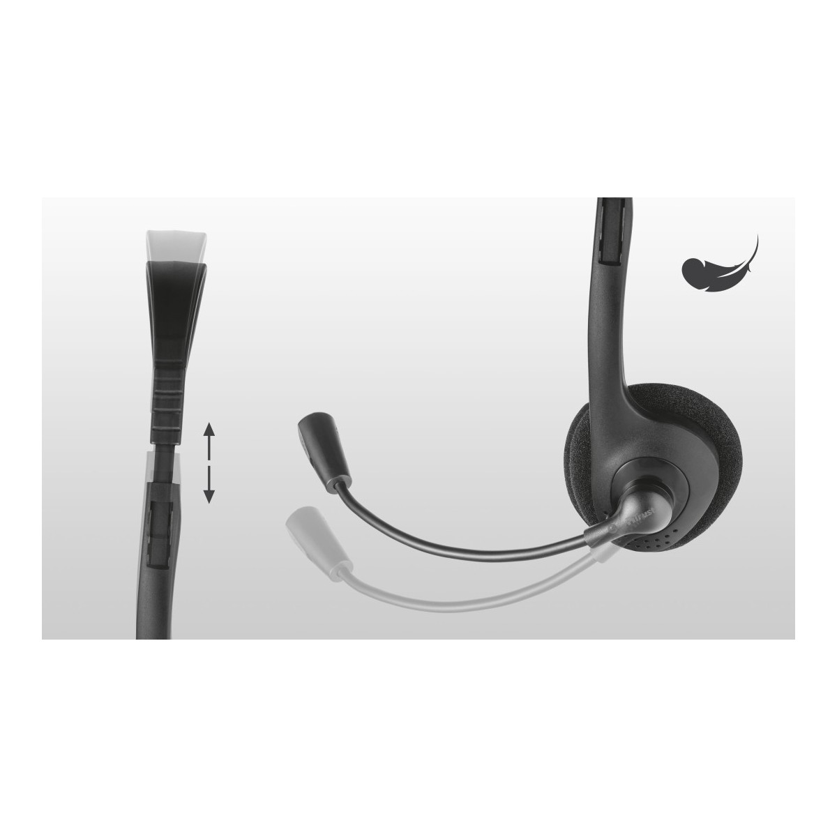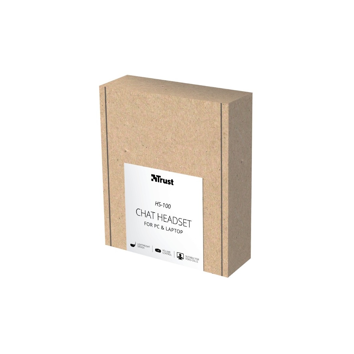 Trust HS-100. Tipo di prodotto: Cuffia, Stile d'uso: Padiglione auricolare, Utilizzo raccomandato: Ufficio/Call center. Tecnologia di connessione: Cablato. Disegno auricolare: Sovraurale, Frequenza cuffia: 20 - 20000 Hz, Impedenza: 32 Ω. Tipo di microfono: Asta, Frequenza microfono: 30 - 16000 Hz, Tipo direzionamento microfono: Omnidirezionale. Larghezza: 170 mm, Profondità: 60 mm, Altezza: 130 mm