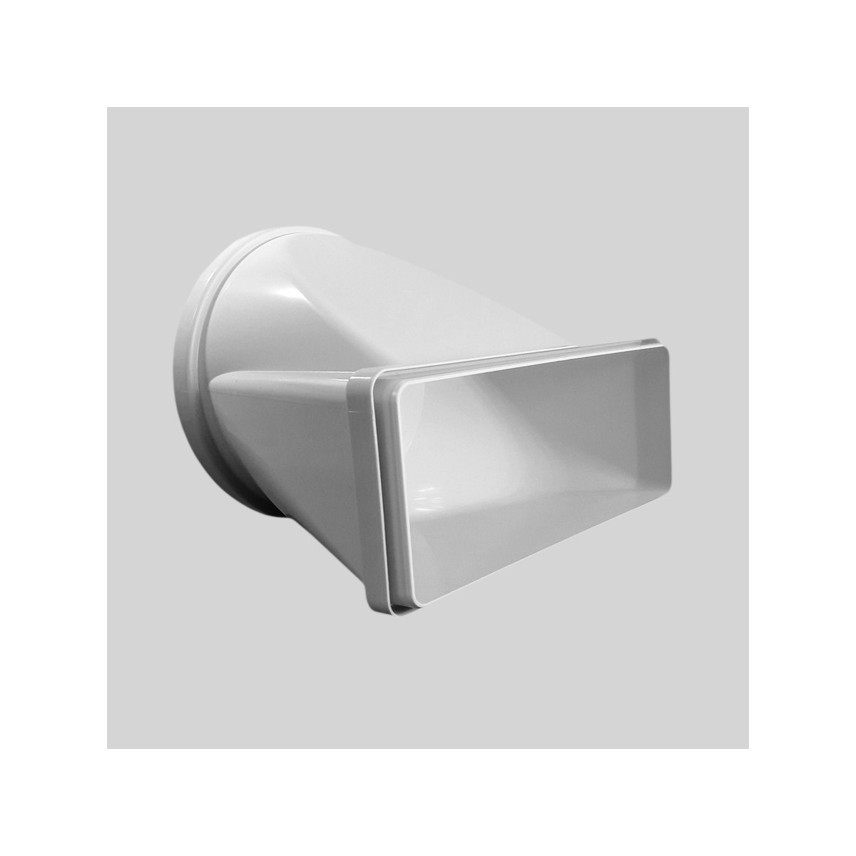 Il raccordo 1053Q permette di raccordare orizzontalmente un'entrata Ø 150 mm ad un'uscita di 220x90 mm con estrema facilità. Le sue dimensioni ridotte e l'ottima maneggevolezza infatti consentono una grande facilità d'uso, d'impiego e di manovra.