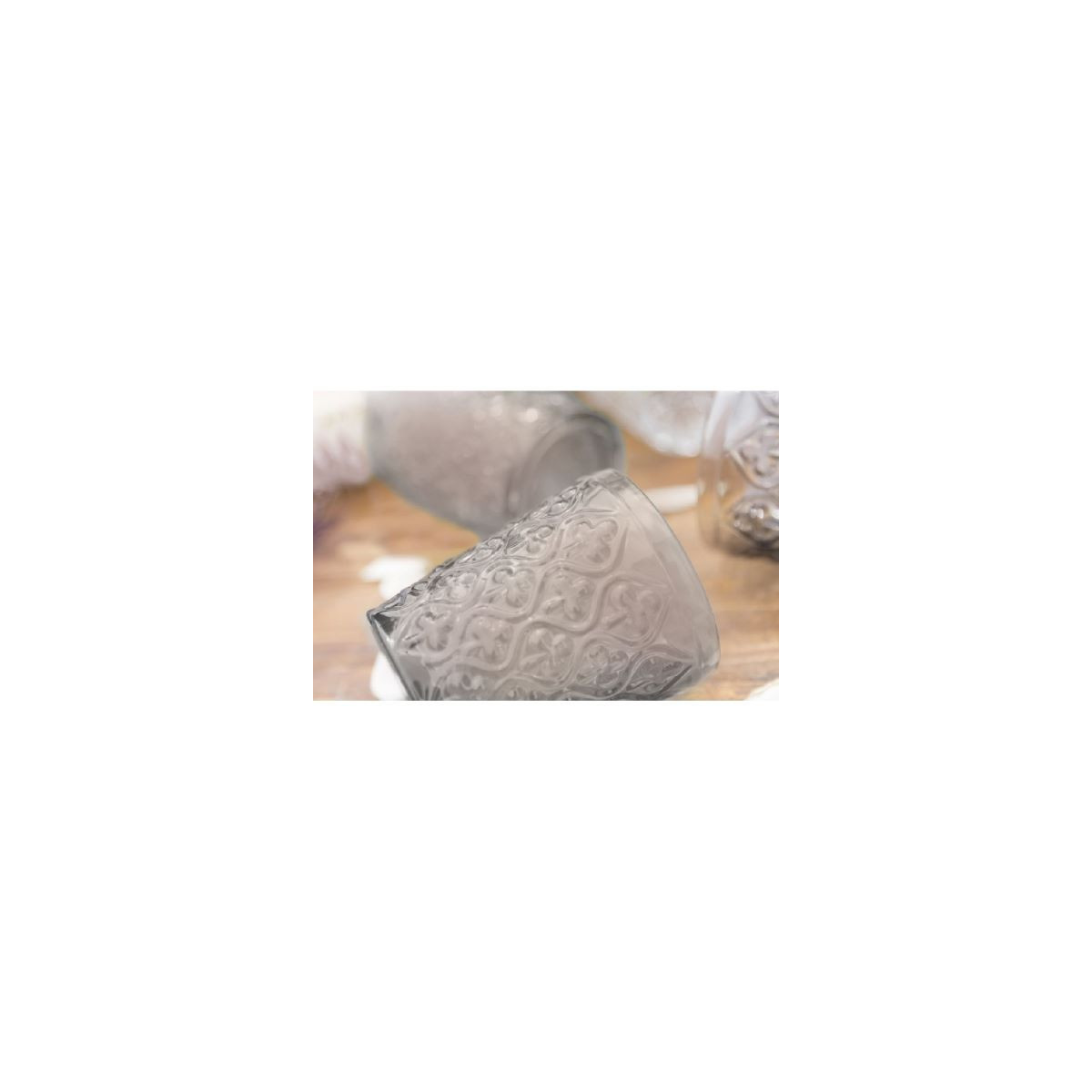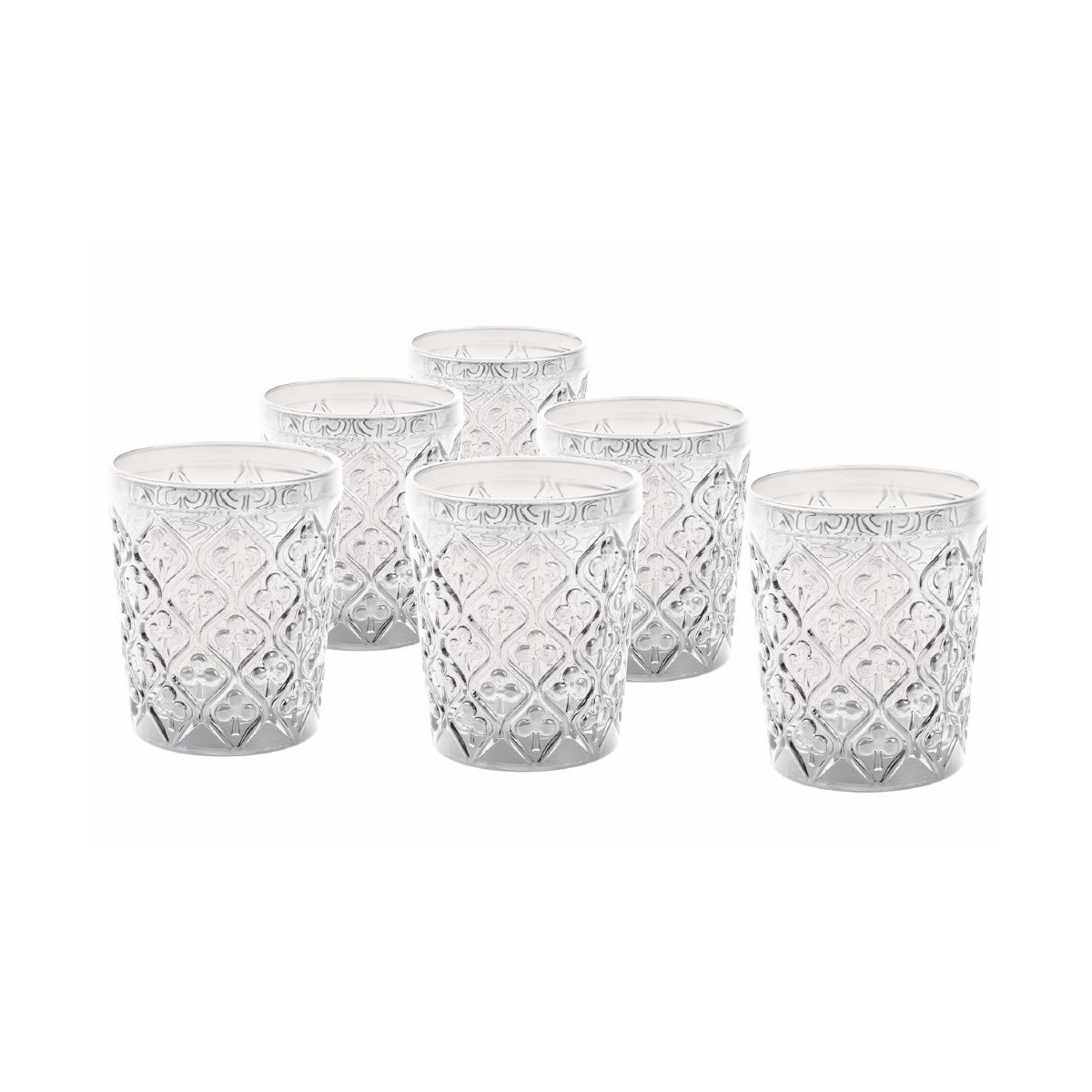 Marrakech Set 6 bicchieri acqua In vetro Superficie lavorata Capacità : 240 ml Misure: à 8,3 x h. 10 cm Colore: trasparente Lavabili in lavastoviglie