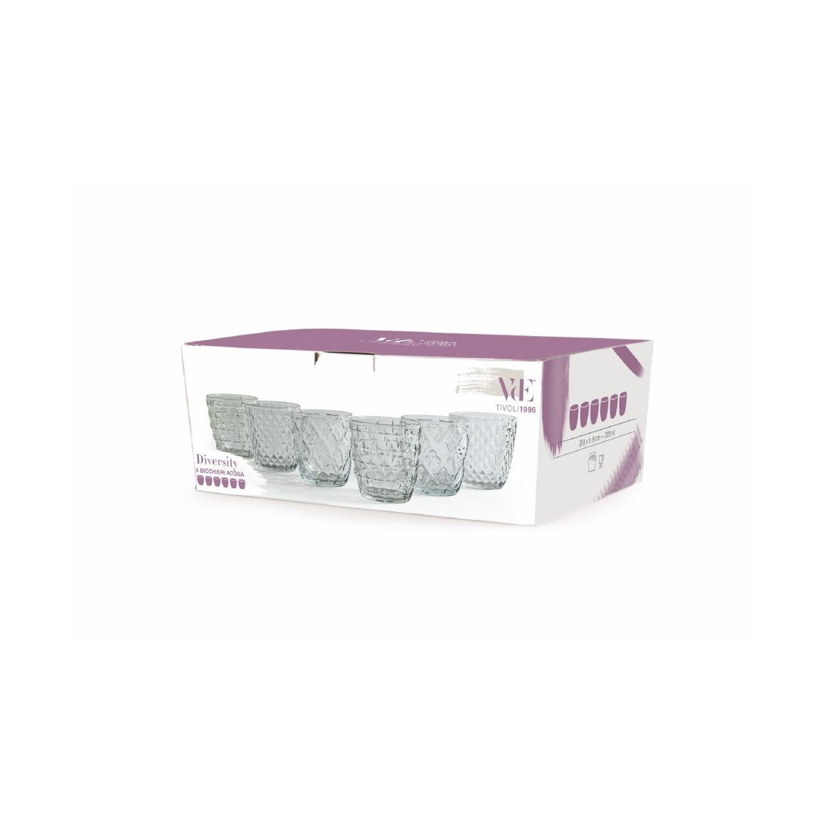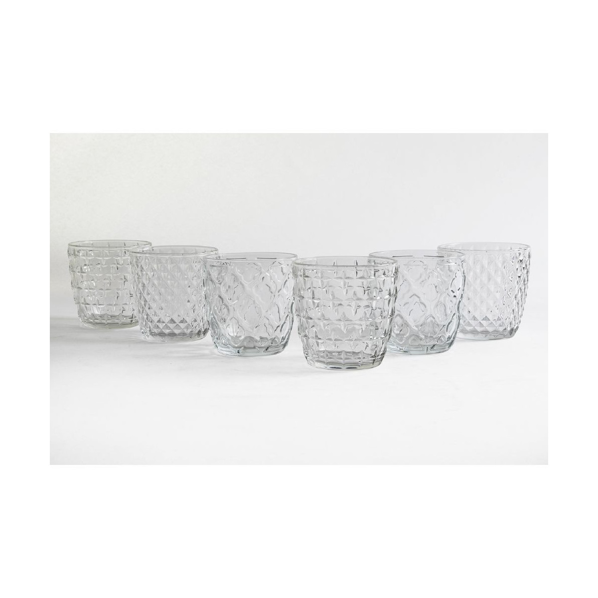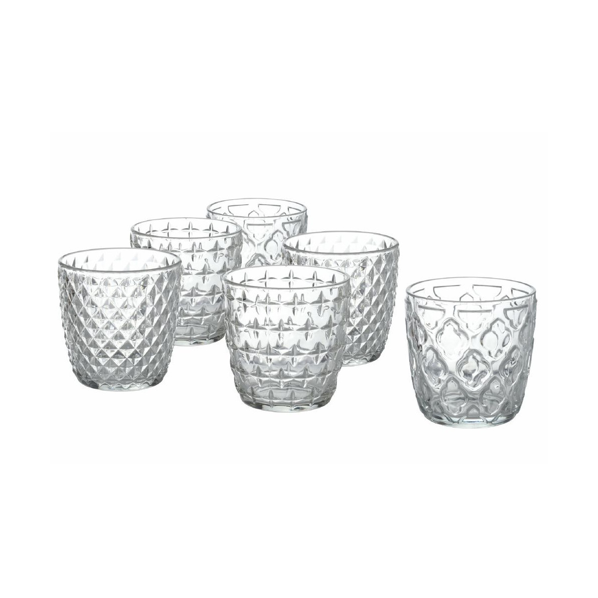 Diversity Set 6 bicchieri acqua In vetro Superficie lavorata Misure: à 9 x h. 9 cm Capacità : 325 ml Lavabili in lavastoviglie a basse temperature