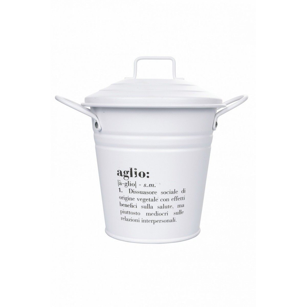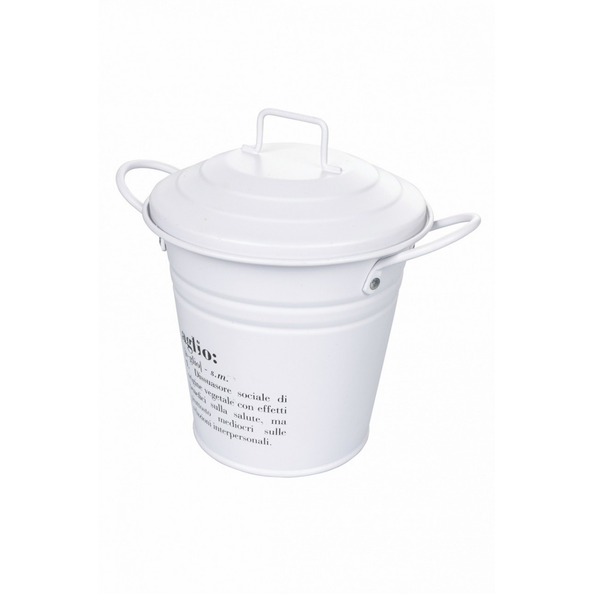Victionary Secchiello porta aglio In metallo Con 2 fori nella parte posteriore Con scritta Doppia impugnatura Colore: bianco Misure: 13x13 cm