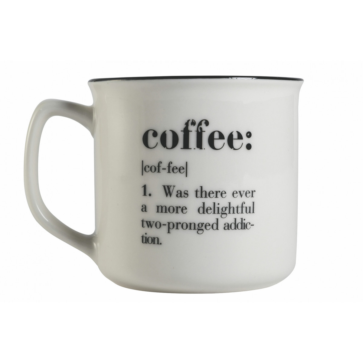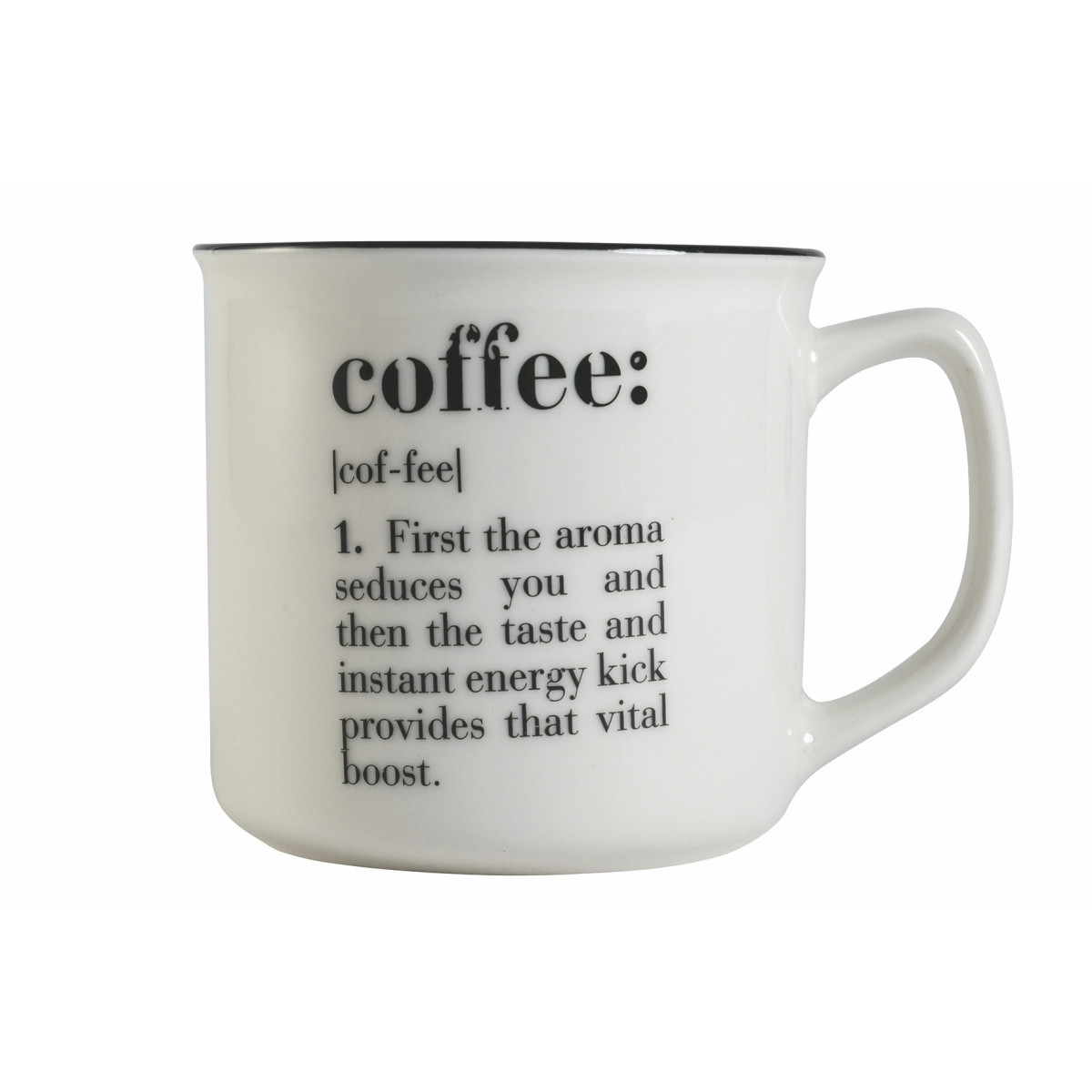 Victionary Coffee Mug double face In bone china Con manico Bordatura nera Con scritta nera Finitura lucida Misure: à 9,2 x h. 8,7 cm Colore: bianco Capacità : 350 ml Lavabile in lavastoviglie Utilizzabile in microonde