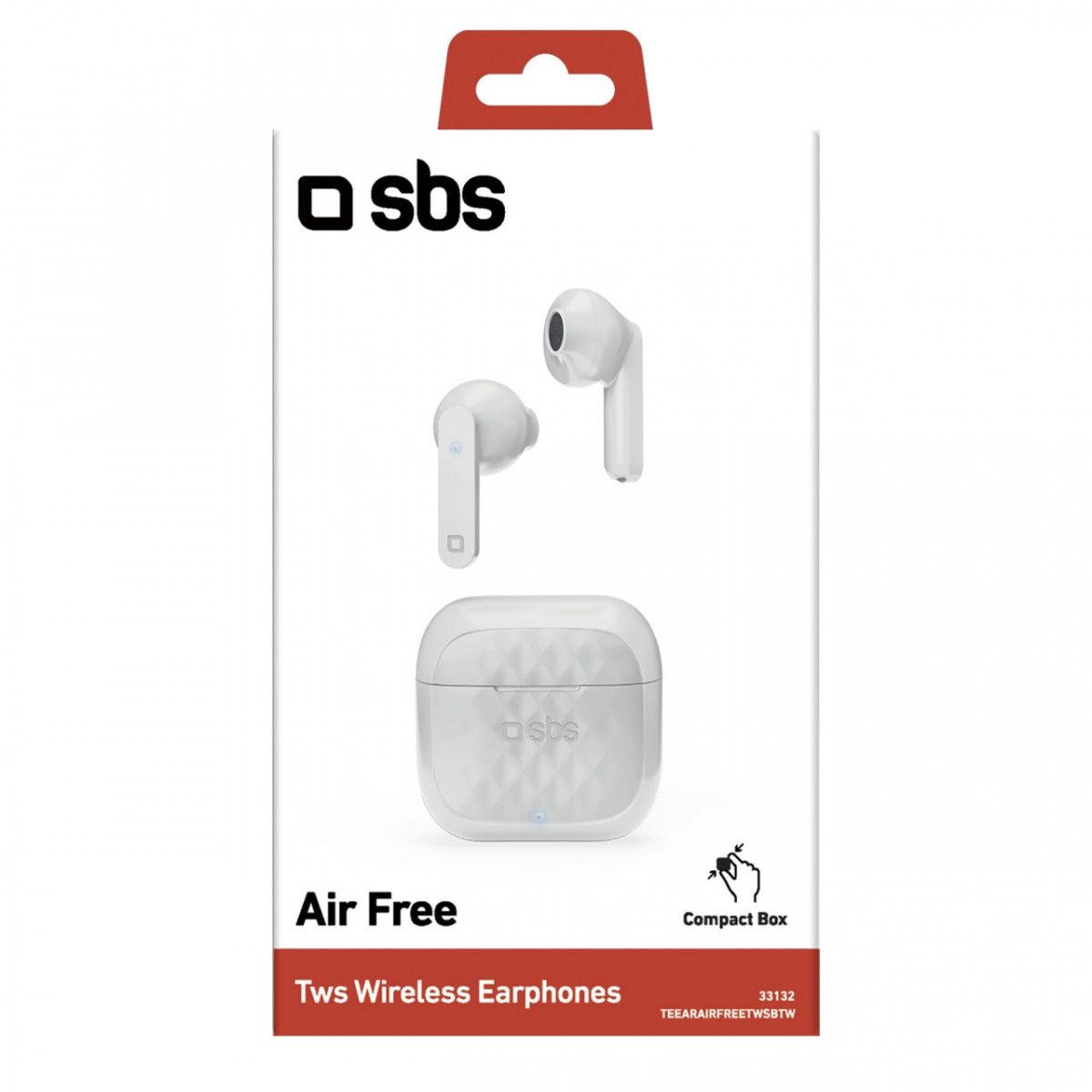 SBS TWS Air Free. Tipo di prodotto: Cuffie, Stile d'uso: Auricolare, Utilizzo raccomandato: Calls/Music. Tecnologia di connessione: Senza fili, Range wireless: 10 m. Disegno auricolare: Intraurale, Tipo di auricolari intraurali: Auricolari. Tipo di microfono: Integrata. Tipo batteria: Batteria integrata, Durata batteria: 24 h, Capacità della batteria: 35 mAh