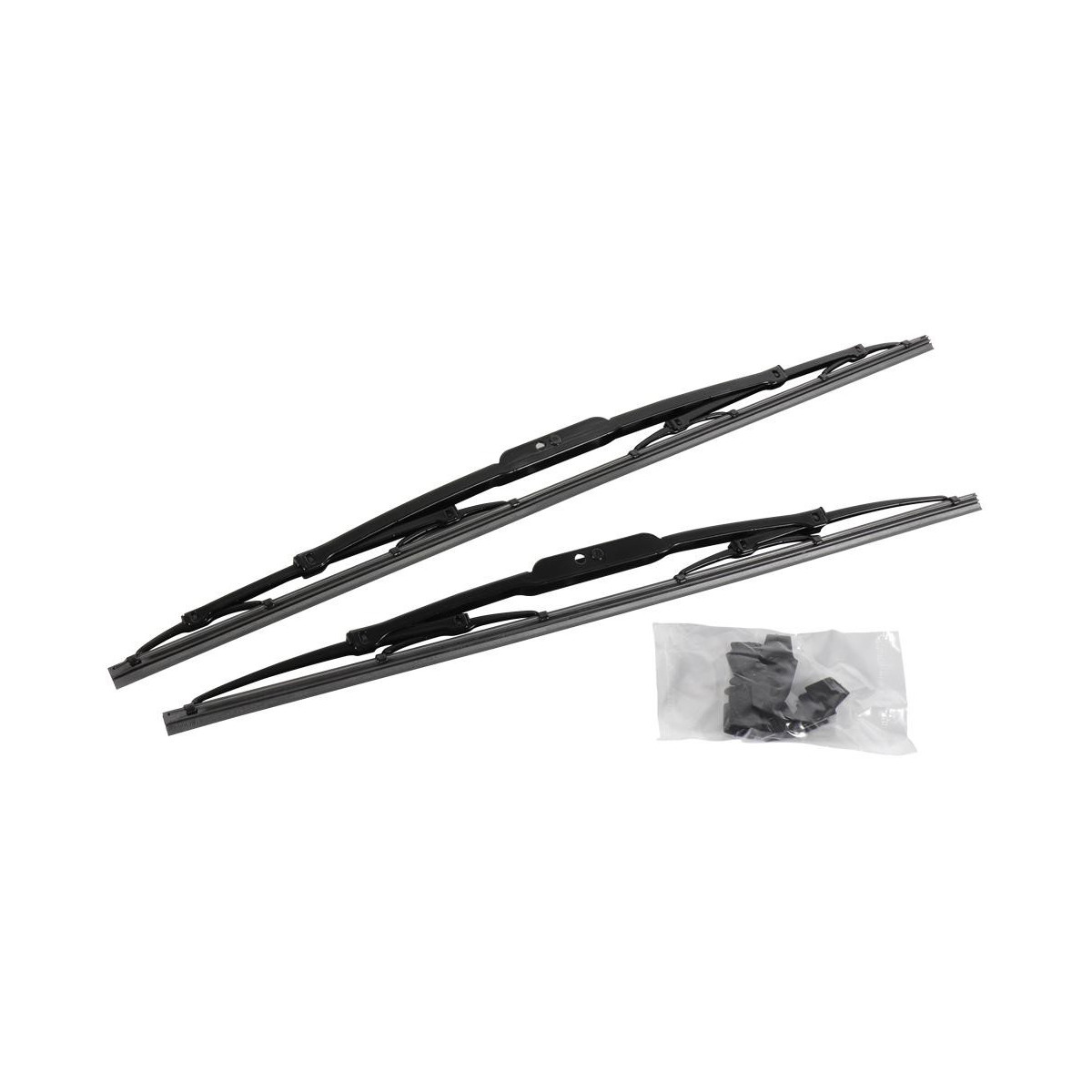 Coppia spazzole tergicristallo con gommino stampato e grafitato. Provviste di attacco rapido per bracci tergicristallo ad U. Lunghezza 53/45 cm.