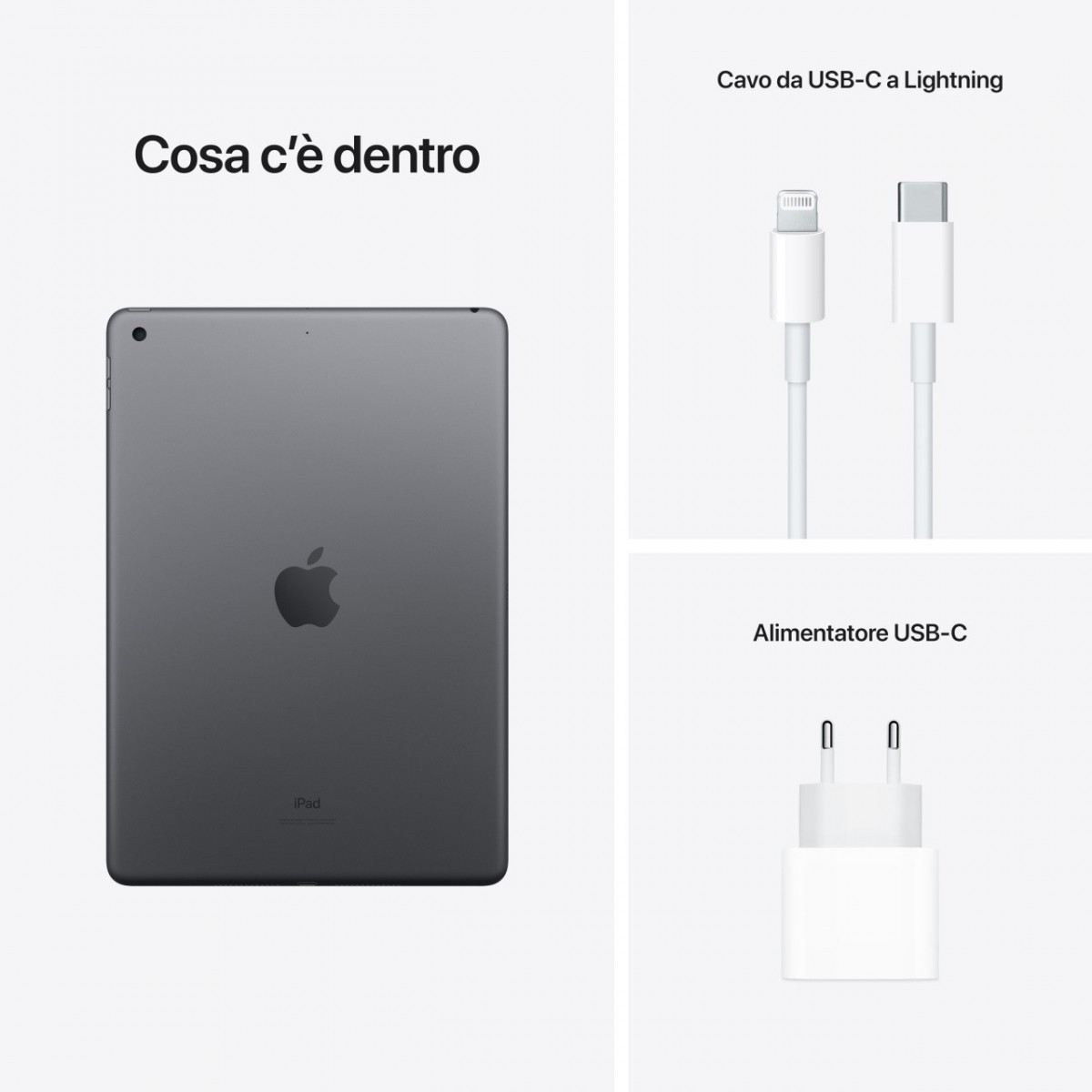 Apple iPad 10.2-inch Wi-Fi 256GB - Grigio siderale. Dimensioni schermo: 25,9 cm (10.2"), Risoluzione del display: 2160 x 1620 Pixel, Tecnologia display: LED. Capacità memoria interna: 256 GB. Famiglia processore: Apple, Modello del processore: A13. Risoluzione fotocamera posteriore (numerico): 8 MP, Tipo di fotocamera posteriore: Fotocamera singola, Risoluzione fotocamera frontale (numerico): 12 MP, Fotocamera frontale. Wi-Fi standard: Wi-Fi 5 (802.11ac). Peso: 487 g. Sistema operativo incluso: iPadOS 15. Colore del prodotto: Grigio