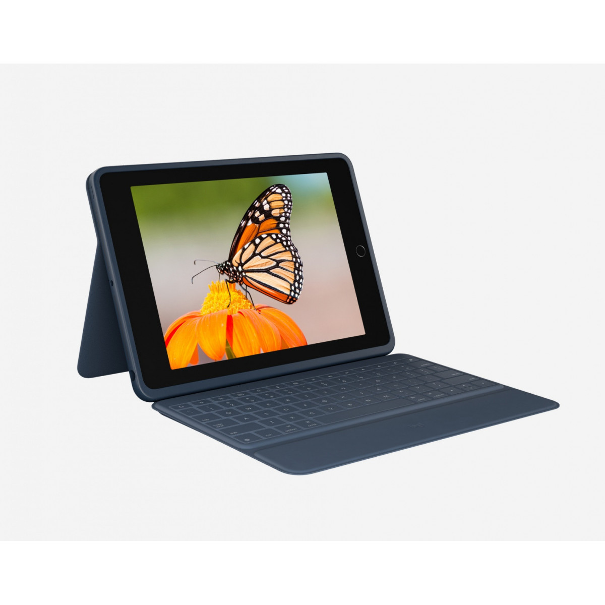 Logitech Rugged Combo 3. Linguaggio tastiera: Italiano, Passo del tasto: 1,8 cm, Distanza di pressione del tasto: 1,2 mm. Compatibilità marca: Apple, Compatibilità: iPad (7th generation) Model: A2200, A2197, A2198 iPad (8th generation) Model: A2270, A2428, A2429,..., Colore del prodotto: Blu. Tecnologia di connessione: Docking, Interfaccia dispositivo: Smart Connector. Alimentazione: Dock. Sistema operativo mobile supportato: iPadOS