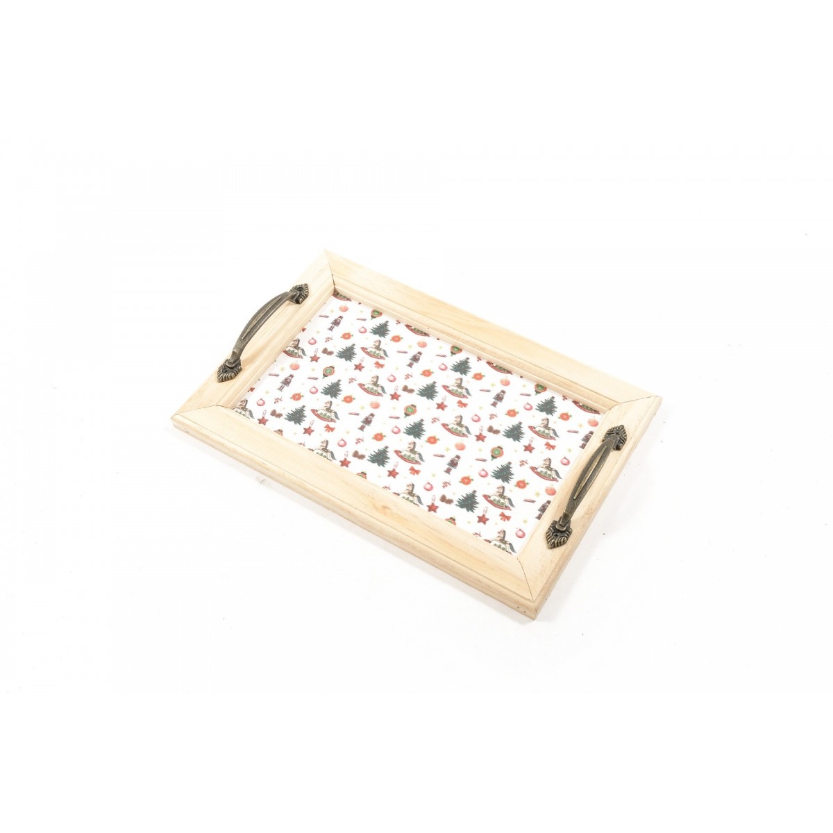 Mercury Vassoio in Legno "Christmas Story" con Manici in Metallo 30x20x3.5cm
