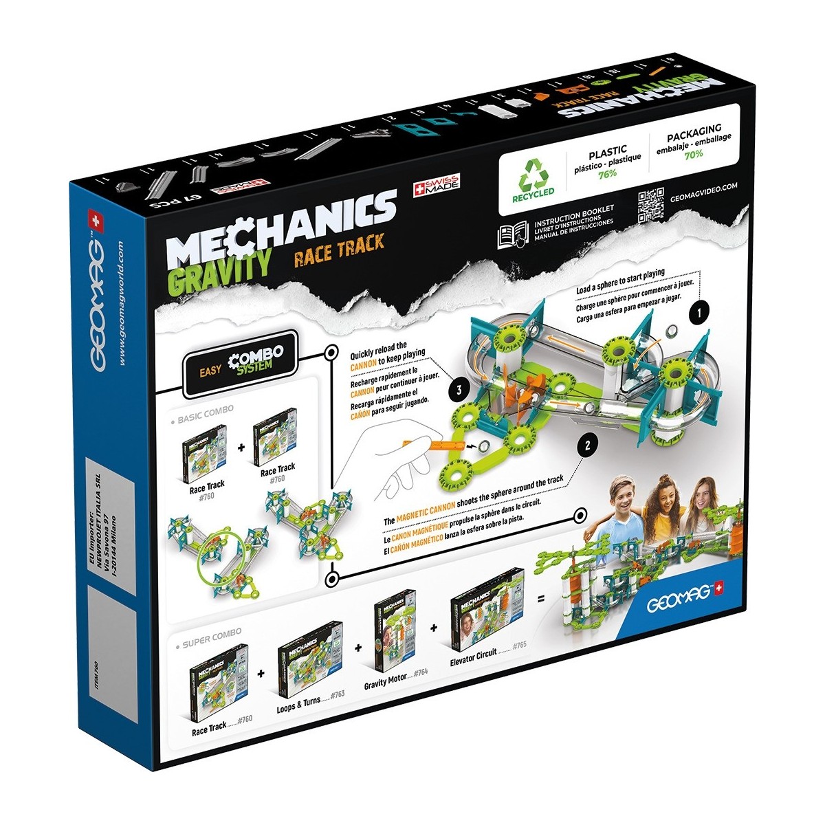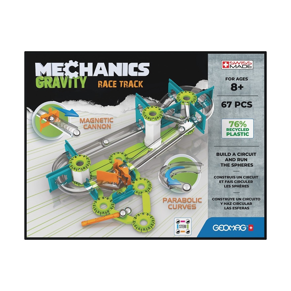 Geomag Mechanics Gravity RE Race Track. Numero di pezzi: 67 pz, Colore del prodotto: Verde, Argento, Genere consigliato: Ragazzo/Ragazza, Età consigliata (min): 8 anno/i. Peso dell'imballo: 400 g