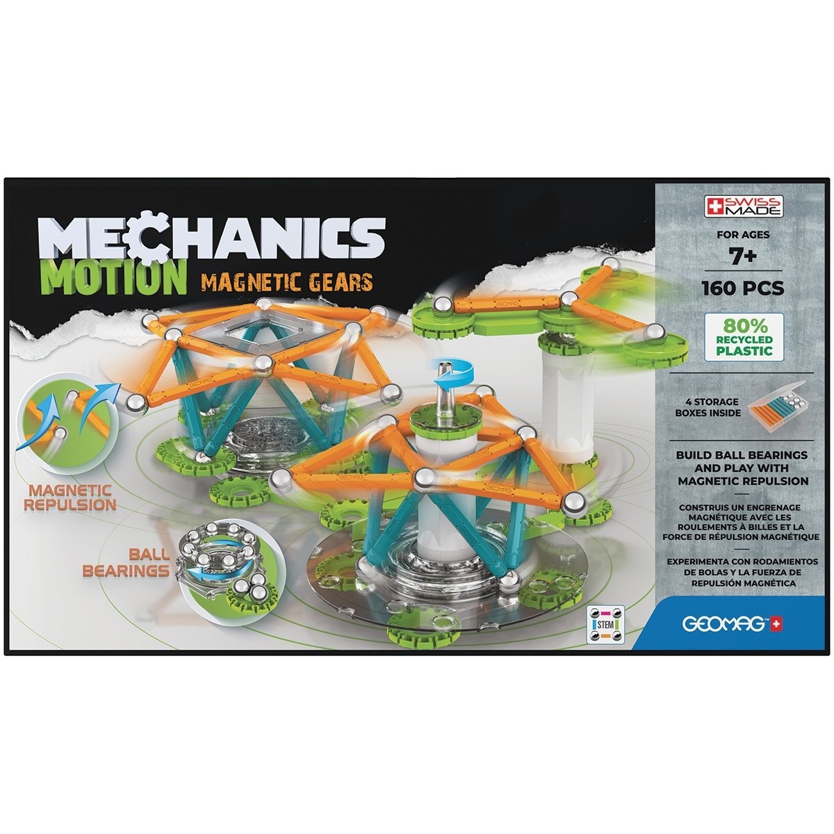 Geomag Mechanics Motion RE 3Magnetic Gears. Numero di pezzi: 160 pz, Colore del prodotto: Multicolore, Genere consigliato: Ragazzo/Ragazza, Età consigliata (min): 7 anno/i. Peso dell'imballo: 1,4 kg