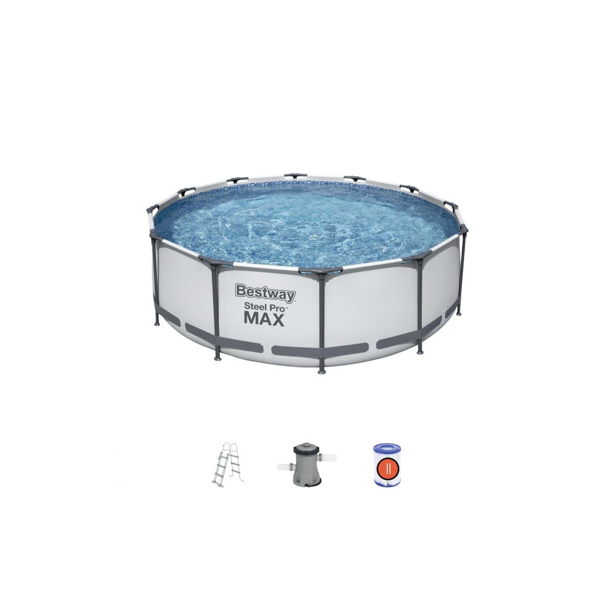 Bestway Steel Pro MAX Piscina Fuori Rotonda Ø 366x100cm, Pompa Filtro a Cartuccia, Scala di Sicurezza