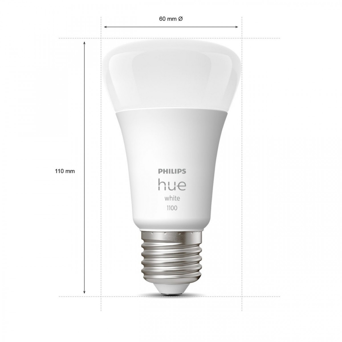Philips Hue White E27 - confezione da 1. Tipo: Lampadina intelligente, Colore del prodotto: Bianco, Interfaccia: Bluetooth/Zigbee. Classe di efficienza energetica della lampadina inclusa: F, Consumi (modalità stand-by): 0,43 W, Consumo energetico (max): 9,5 W. Larghezza: 61 mm, Profondità: 61 mm, Altezza: 110 mm. Larghezza imballo: 72 mm, Profondità imballo: 72 mm, Altezza imballo: 14 mm. Quantità per pacco: 1 pz, Numero di lampadine hue incluse: 1 lampadina(e)