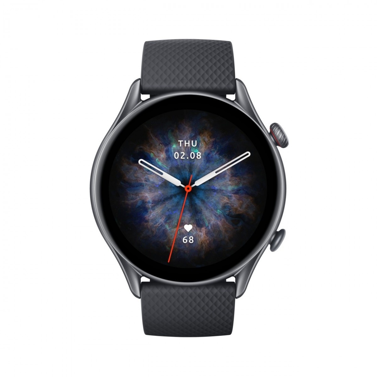 Amazfit GTS 3 Pro. Dimensioni schermo: 3,68 cm (1.45"), Tipo di display: AMOLED, Risoluzione del display: 480 x 480 Pixel, Touch screen. Wi-Fi. GPS (satellitare). Capacità della batteria: 450 mAh. Peso: 32 g. Materiale cinturino: Pelle, Colore cinturino: Nero