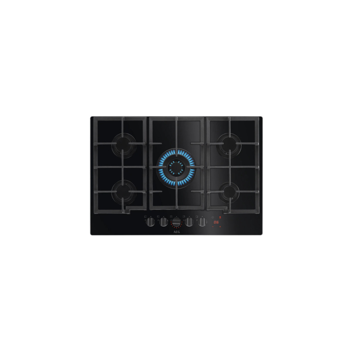 Aeg HKB75451NB - Piano Cottura a Gas, Cristallo Nero, 5 Fuochi, 75 cm