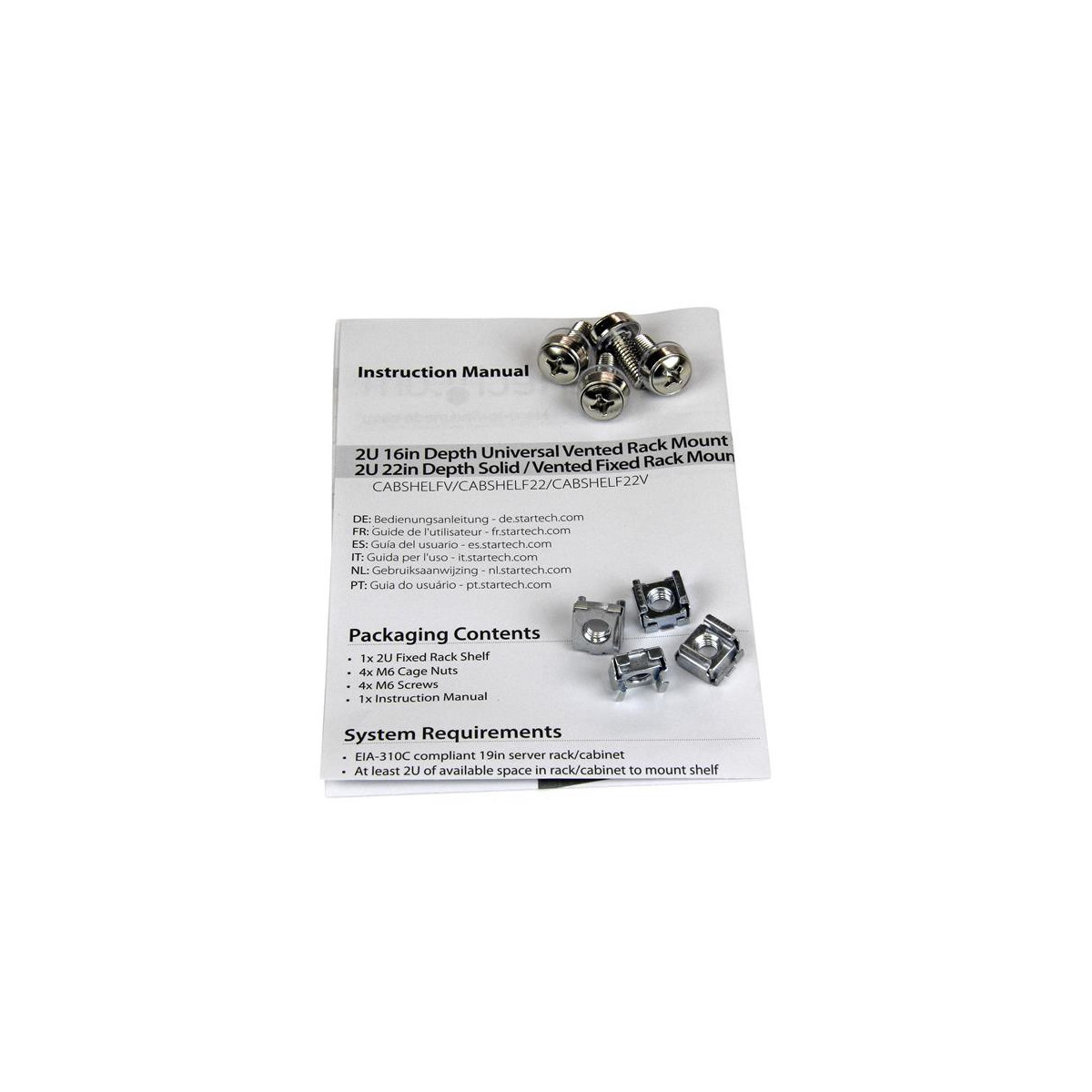 StarTech.com Ripiano per montaggio a rack con fessure 22" 2U - Ripiano per armadio server rack fisso - 22 kg. Tipo: Mensola per scaffale, Colore del prodotto: Nero, Materiale della scocca: Acciaio. Larghezza: 482,7 mm, Profondità: 55,9 mm, Altezza: 88 mm. Larghezza imballo: 505 mm, Profondità imballo: 580 mm, Altezza imballo: 115 mm. Larghezza scatola principale: 50,5 cm, Lunghezza del cartone principale: 58 cm, Altezza scatola principale: 11,5 cm