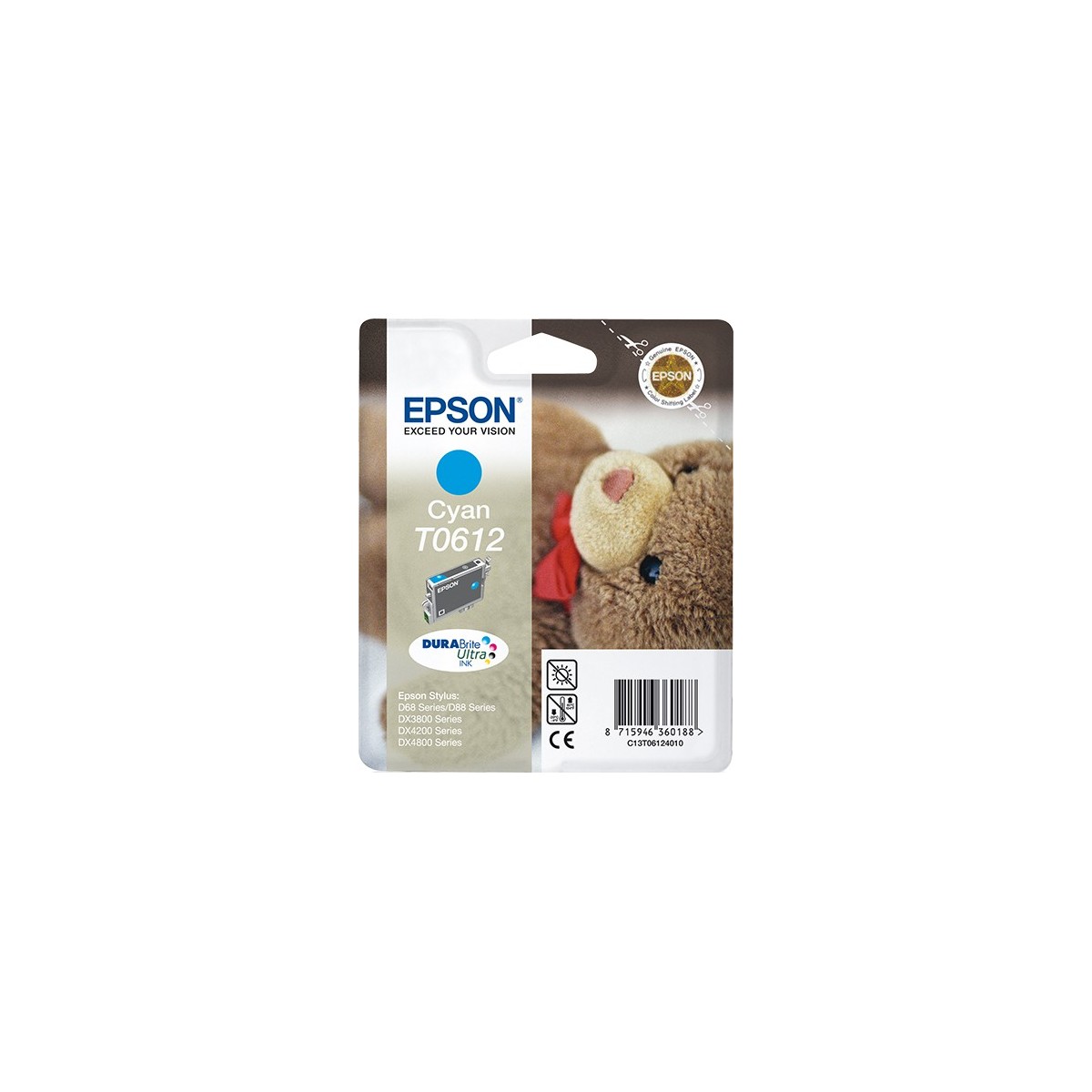 Epson Teddybear Cartuccia Ciano. Tipo: Originale, Colori di stampa: Ciano, Compatibilità marca: Epson. Larghezza: 125 mm, Profondità: 31 mm, Altezza: 75 mm. Ampiezza del pallet: 80 cm, Lunghezza del pallet: 120 cm, Altezza del pallet: 161 cm. Volume di stampa cartuccia: 8 ml, Capacità cartuccia: 250 fogli