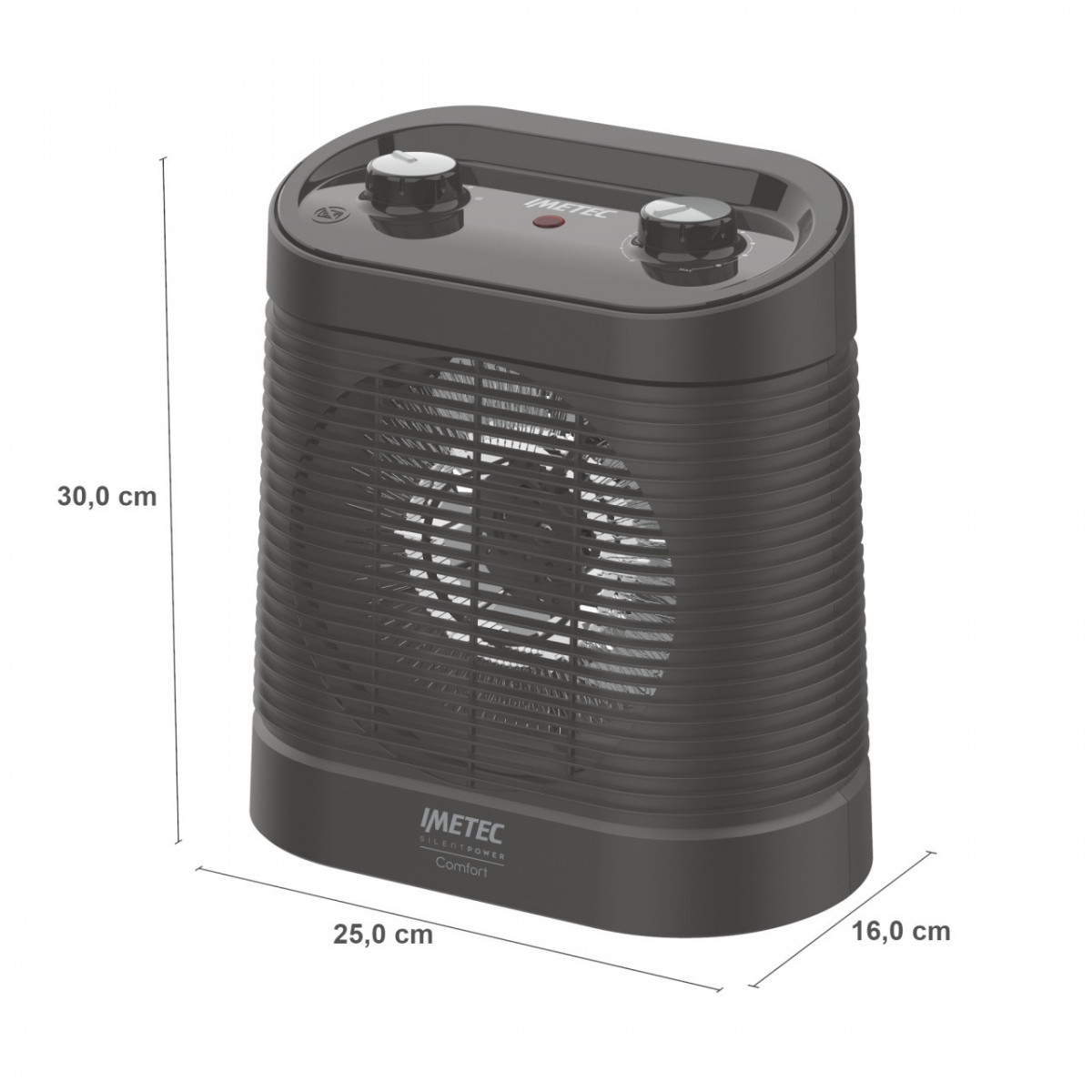Imetec Silent Power Comfort. Tipo: Riscaldatore ambiente elettrico con ventilatore, Lunghezza cavo: 1,3 m, Codice di protezione internazionale (IP): IP20. Adatto per: Interno, Opzioni di posizionamento: Pavimento, Tavolo, Colore del prodotto: Nero. Potenza termica: 2100 W. Tensione di ingresso AC: 220 - 240 V, Frequenza di ingresso AC: 50 Hz. Larghezza: 168 mm, Profondità: 250 mm, Altezza: 300 mm