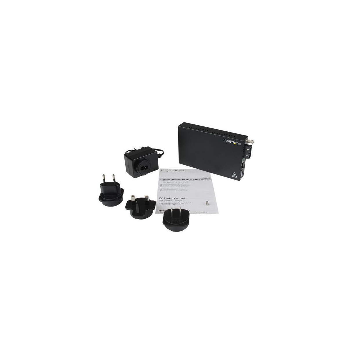 StarTech.com Convertitore media Ethernet Gigabit in fibra multimodale SC 550 m -1000 Mbps. Velocità massima di trasferimento dati: 2000 Mbit/s, Tipo di interfaccia Ethernet: Gigabit Ethernet, sistema duplex: Full, Half. Connettore a fibra ottica: SC, Tecnologia di connessione: Cablato. Distanza massima di trasferimento: 550 m, Lunghezza d'onda: 850 nm, Struttura della modalità di fibra: Modalità multipla. Colore del prodotto: Nero, Materiale della scocca: Acciaio, Certificazione: CE, FCC. Voltaggio di ingresso: 115 - 230 V, Corrente d'ingresso: 0.36 A, Voltaggio di uscita: 12 V