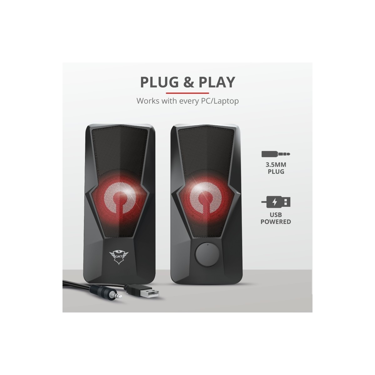 Migliora l'audio dei tuoi giochi con il set di altoparlanti 2.0. Con l'installazione semplice e l'audio eccellente, il set di altoparlanti illuminati Trust Gaming GXT 610 Argus 2.0 è ideale per ottenere un audio migliore e vivere straordinarie avventure giocando con il laptop o il PC.