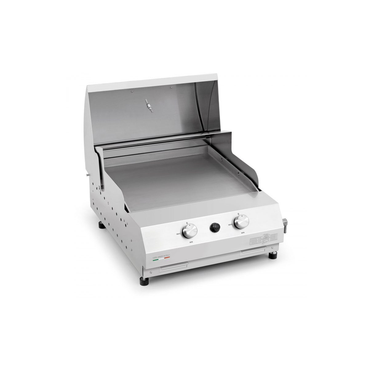 - Cassetto in acciaio inox con raccolta dei grassi di cottura nella vaschetta usa e getta