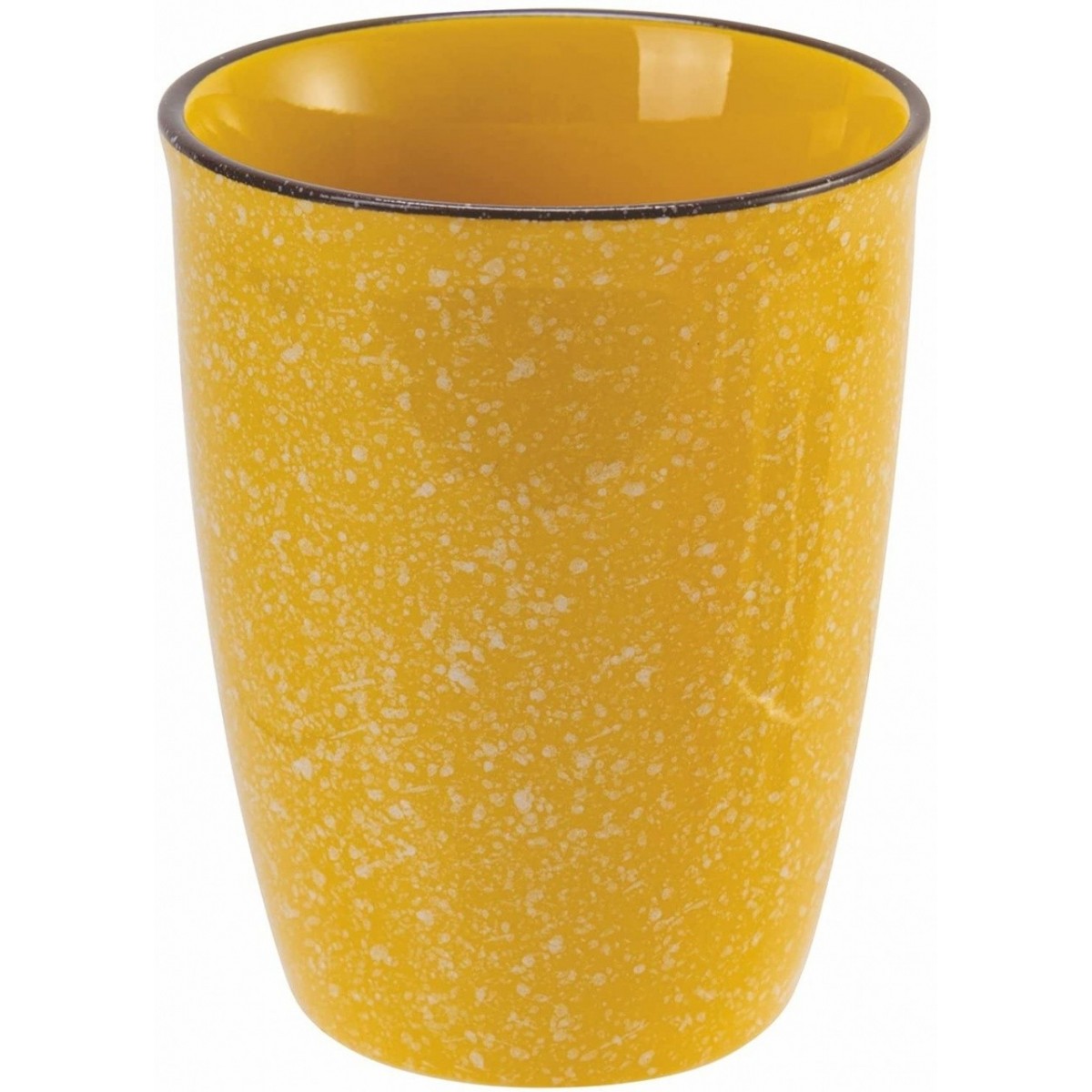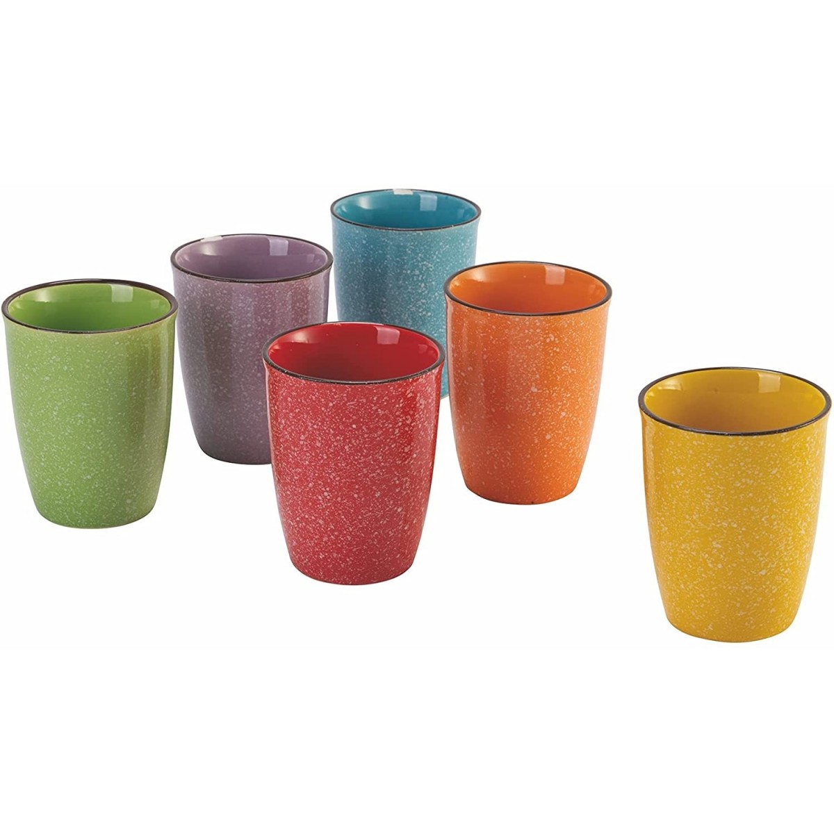 Villa D'este 'Baita', Set 6 bicchieri acqua In gres Con bordino marrone Decoro puntinato bianco Capacità: 320 ml Misure: Ø 9 x h. 10,5 cm Lavabili in lavastoviglie