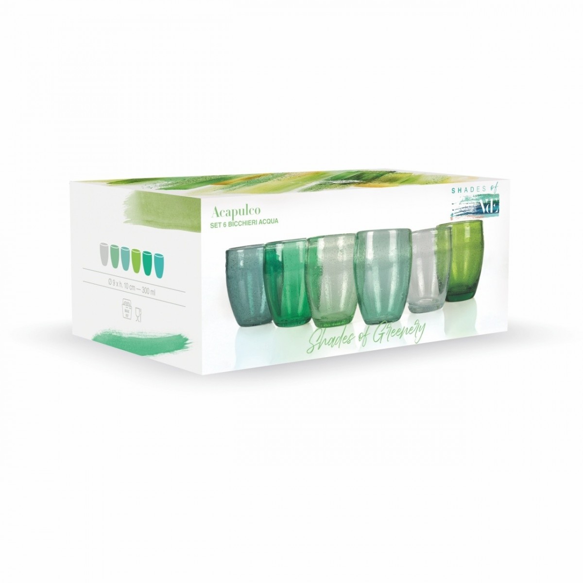 Villa D'Este Home Tivoli 'Acapulco' Set 6 bicchieri acqua 300 ml, Toni del Verde