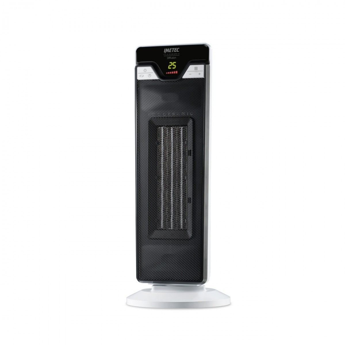 Imetec Diffusion. Tipo: Riscaldatore ambiente elettrico con ventilatore, Tipologia elemento riscaldante: Ceramica, Durata massima del timer: 24 h. Adatto per: Interno, Opzioni di posizionamento: Pavimento, Tavolo, Colore del prodotto: Nero, Bianco. Potenza termica: 2200 W. Tensione di ingresso AC: 220 - 240 V, Frequenza di ingresso AC: 50 Hz. Larghezza: 195 mm, Profondità: 222 mm, Altezza: 551 mm