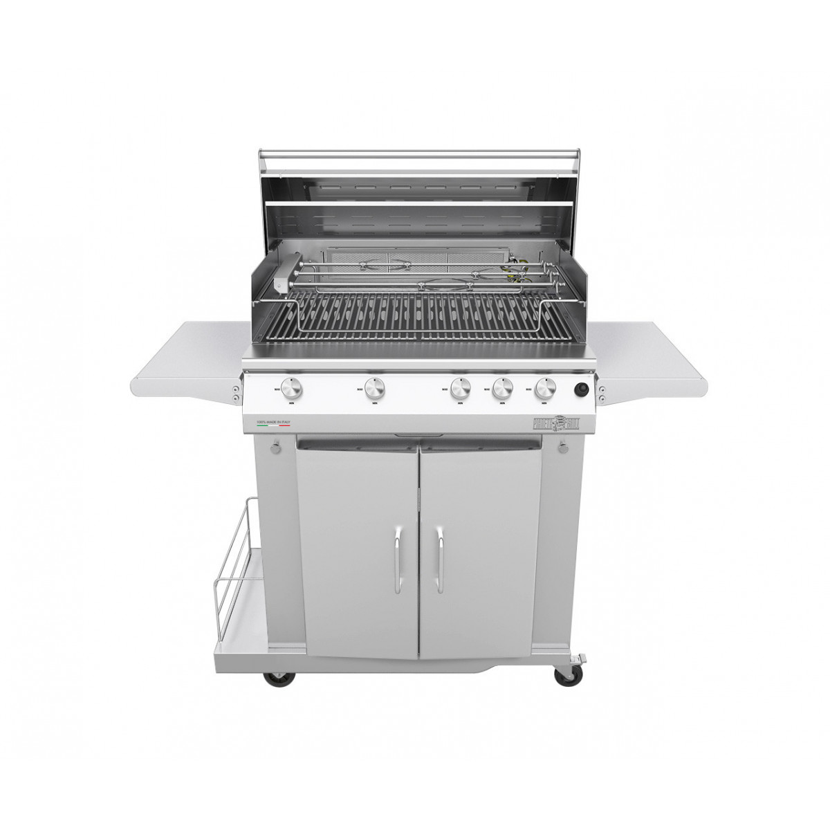 Manopole in acciaio inox – Cassetto estraibile in acciaio inox per la raccolta dei grassi di cottura – Vano porta bombola interno