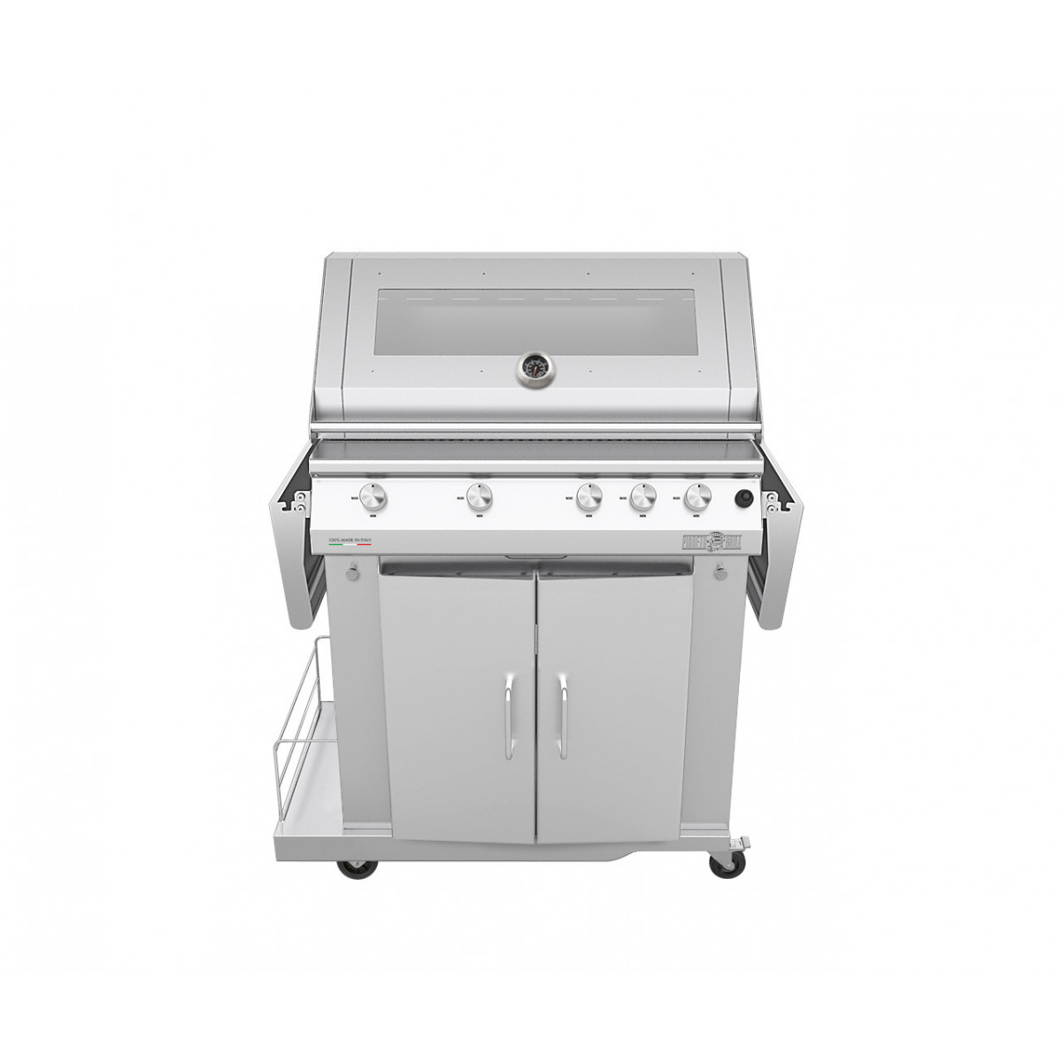 Manopole in acciaio inox – Cassetto estraibile in acciaio inox per la raccolta dei grassi di cottura – Vano porta bombola interno