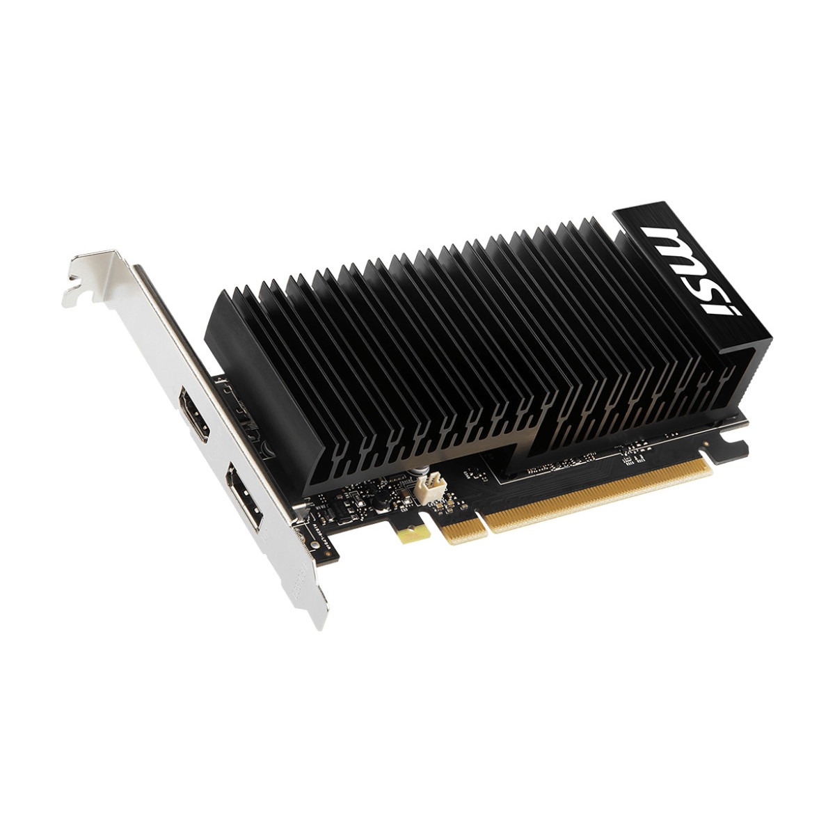 MSI GeForce GT 1030 2GHD4 LP OC. Processore grafico / fornitore: NVIDIA, Processore grafico: GeForce GT 1030, Frequenza del processore: 1189 MHz. Memoria Grafica Dedicata: 2 GB, Tipo memoria adattatore grafico: GDDR4, Ampiezza dati: 64 bit, Velocità memoria: 2100 MHz. Versione DirectX: 12.0, Versione OpenGL: 4.5. Tipo interfaccia: PCI Express x16 3.0. Tipo di raffreddamento: Passivo