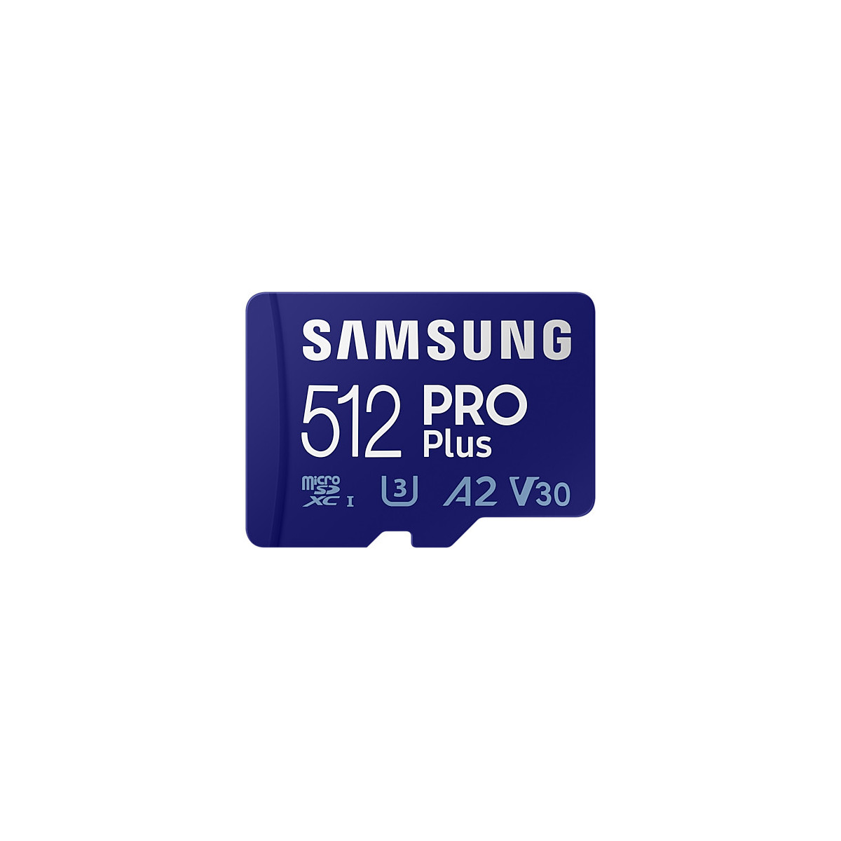 Samsung PRO Plus. Capacità: 512 GB, Tipo flash card: MicroSDXC, Classe di memoria flash: Classe 10, Tipo di RAM: UHS-I, Velocità di lettura: 160 MB/s, Velocità di scrittura: 120 MB/s, Classe di velocità UHS: Class 3 (U3), Classe di velocità video: V30. Funzioni di protezione: Resistente all'abrasione, A prova di magnete, Resistente agli urti, A prova di temperatura,..., Colore del prodotto: Blu