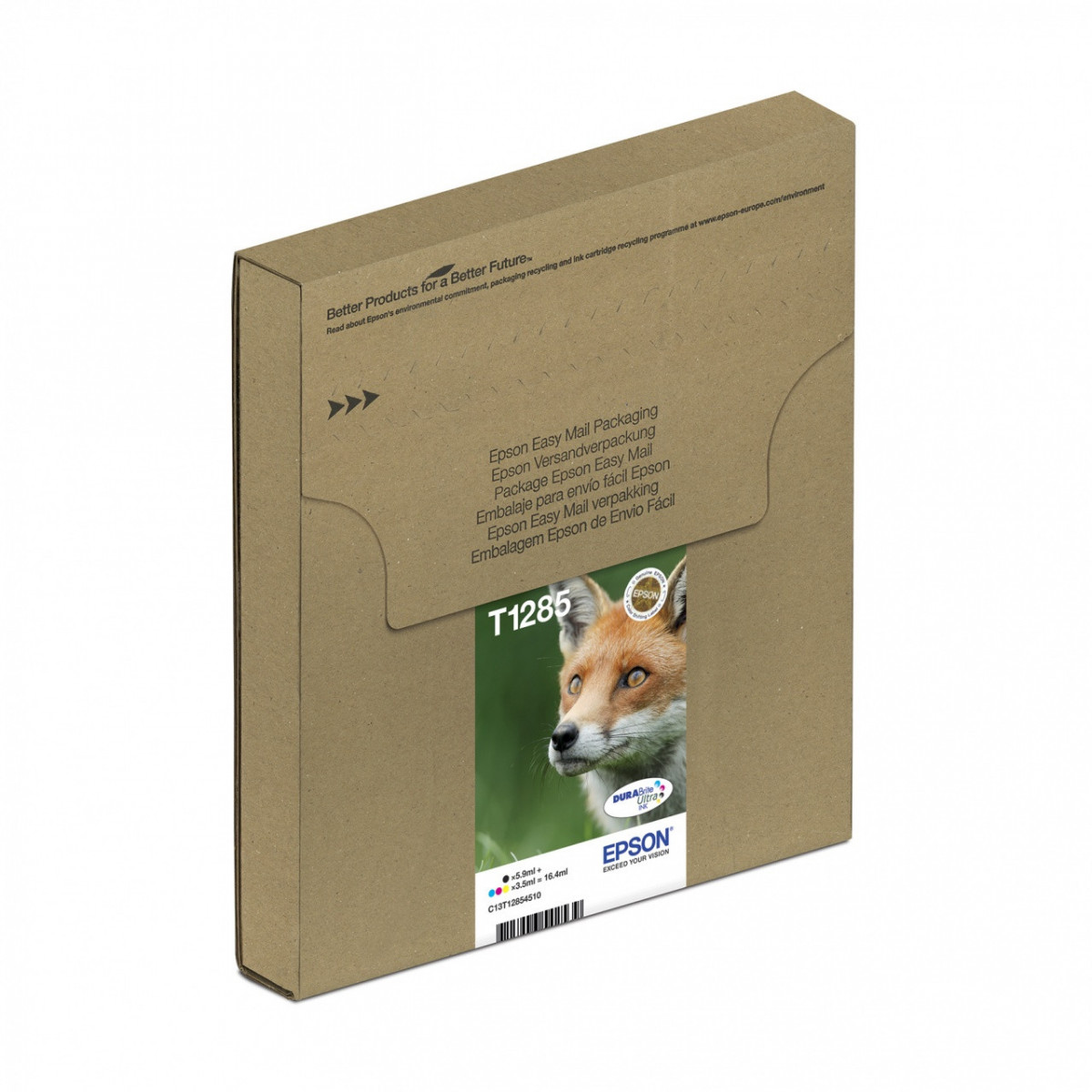 Epson Fox Multipack 4-colours T128 EasyMail. Tipo: Originale, Tipo di inchiostro: Inchiostro a base di pigmento, Colori di stampa: Nero, Ciano, Magenta, Giallo. Larghezza imballo: 20 mm, Profondità imballo: 320 mm, Altezza imballo: 195 mm. Quantità per pallett: 800 pezzo(i), Larghezza scatola principale: 40 cm, Lunghezza del cartone principale: 45,5 cm