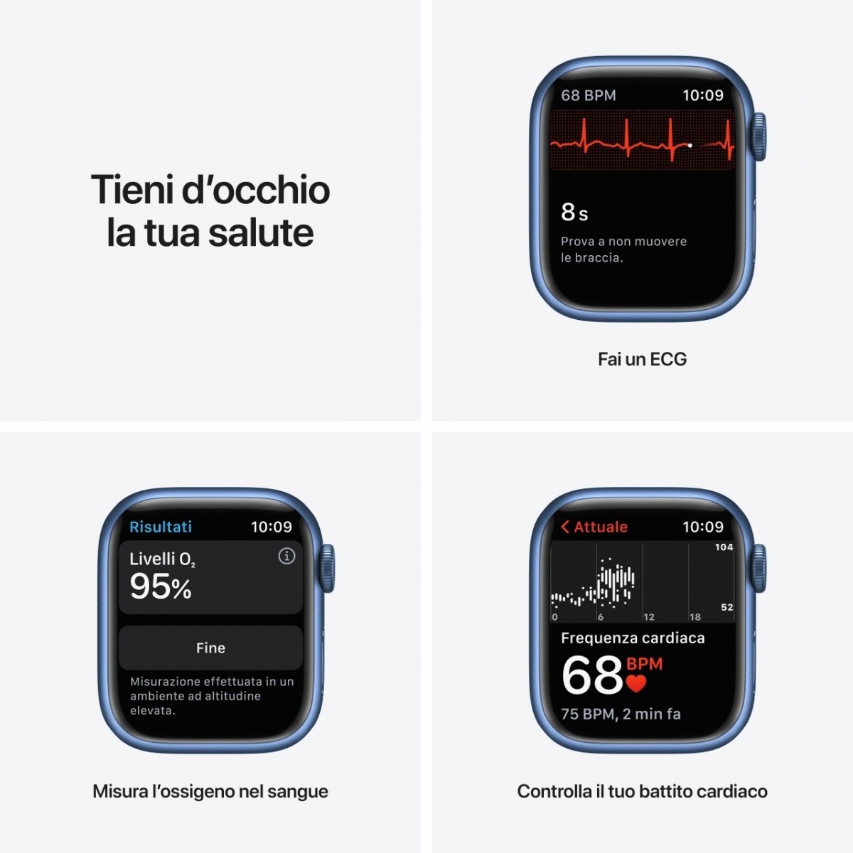Apple Watch Series 7 GPS, 41mm Cassa in Alluminio Blu con Cinturino Sport Azzurro